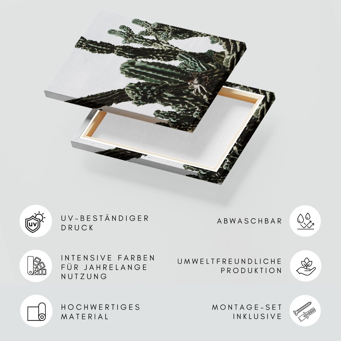 Obraz na płótnie z motywem kaktusy, rośliny, natura to kwintesencja estetyki i trwałości. Dzięki łatwemu montażowi i uniwersalnemu wzornictwu, czyni go idealnym wyborem zarówno do codziennego użytku, jak i na wyrafinowany prezent.
