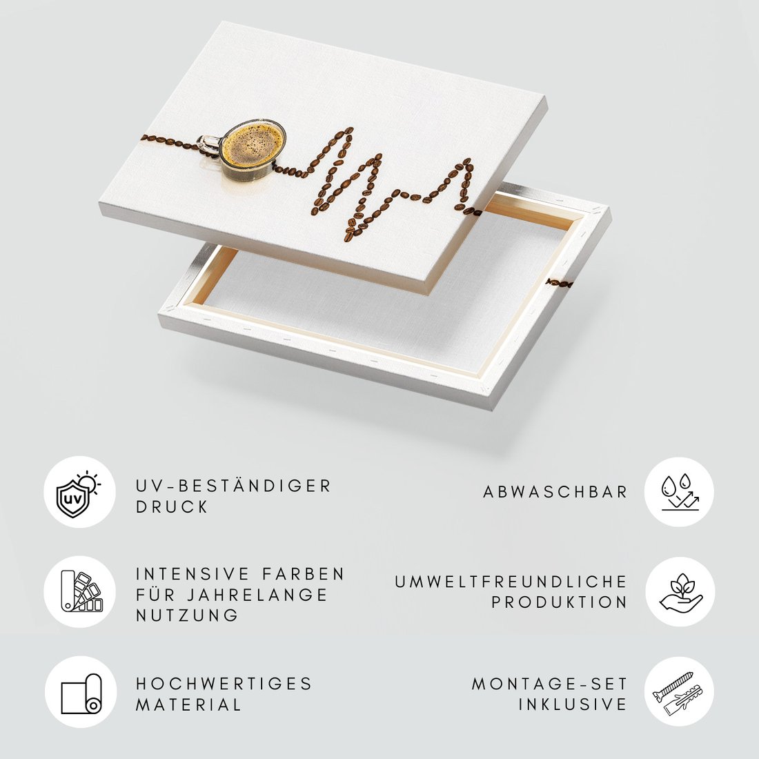 Obraz na płótnie z motywem kawa, ziarna, napój to kwintesencja estetyki i trwałości. Dzięki łatwemu montażowi i uniwersalnemu wzornictwu, czyni go idealnym wyborem zarówno do codziennego użytku, jak i na wyrafinowany prezent.