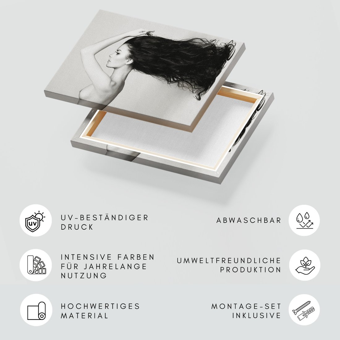 Obraz na płótnie z motywem kobieta, włosy, naga to kwintesencja estetyki i trwałości. Dzięki łatwemu montażowi i uniwersalnemu wzornictwu, czyni go idealnym wyborem zarówno do codziennego użytku, jak i na wyrafinowany prezent.