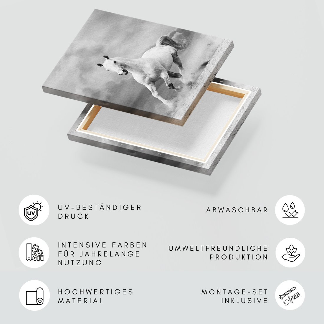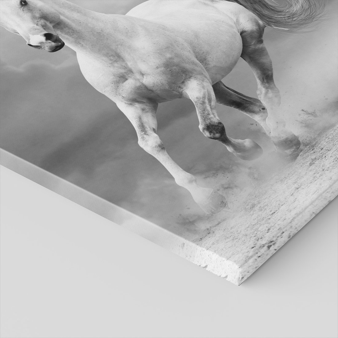Obraz na płótnie z motywem koń, zwierzę, galop to kwintesencja estetyki i trwałości. Dzięki łatwemu montażowi i uniwersalnemu wzornictwu, czyni go idealnym wyborem zarówno do codziennego użytku, jak i na wyrafinowany prezent.