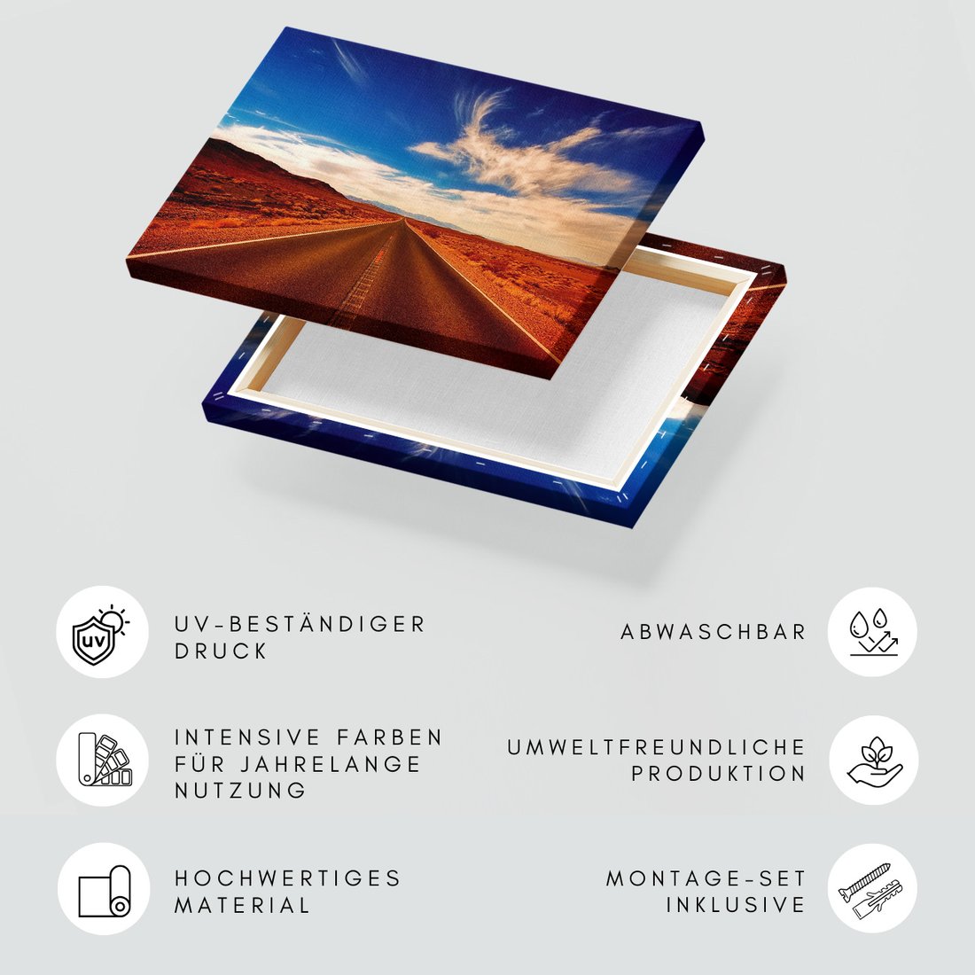 Obraz na płótnie z motywem krajobraz, droga, niebo to kwintesencja estetyki i trwałości. Dzięki łatwemu montażowi i uniwersalnemu wzornictwu, czyni go idealnym wyborem zarówno do codziennego użytku, jak i na wyrafinowany prezent.