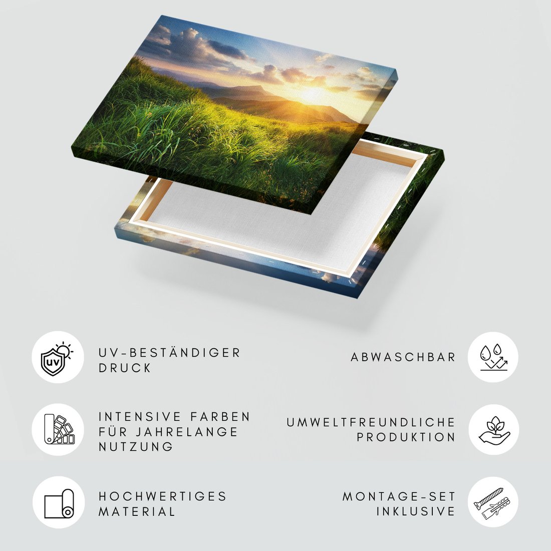Obraz na płótnie z motywem krajobraz, góry, słońce to kwintesencja estetyki i trwałości. Dzięki łatwemu montażowi i uniwersalnemu wzornictwu, czyni go idealnym wyborem zarówno do codziennego użytku, jak i na wyrafinowany prezent.