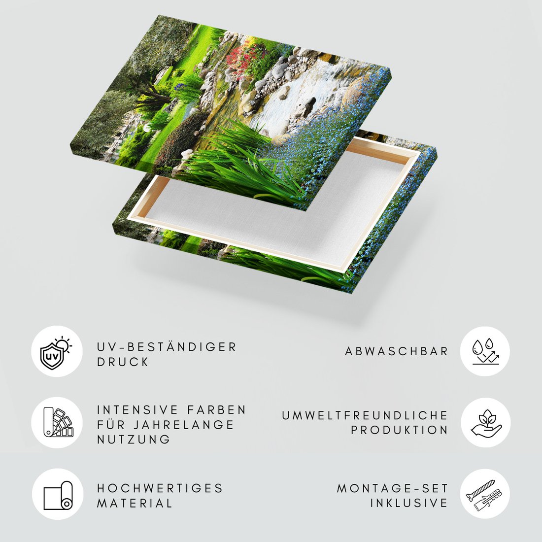 Obraz na płótnie z motywem krajobraz, woda, ogród to kwintesencja estetyki i trwałości. Dzięki łatwemu montażowi i uniwersalnemu wzornictwu, czyni go idealnym wyborem zarówno do codziennego użytku, jak i na wyrafinowany prezent.