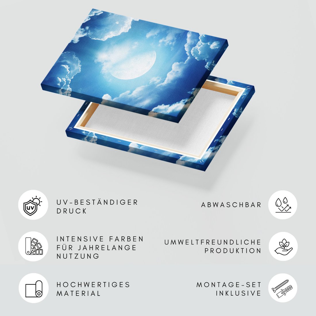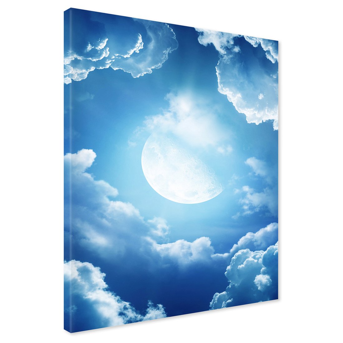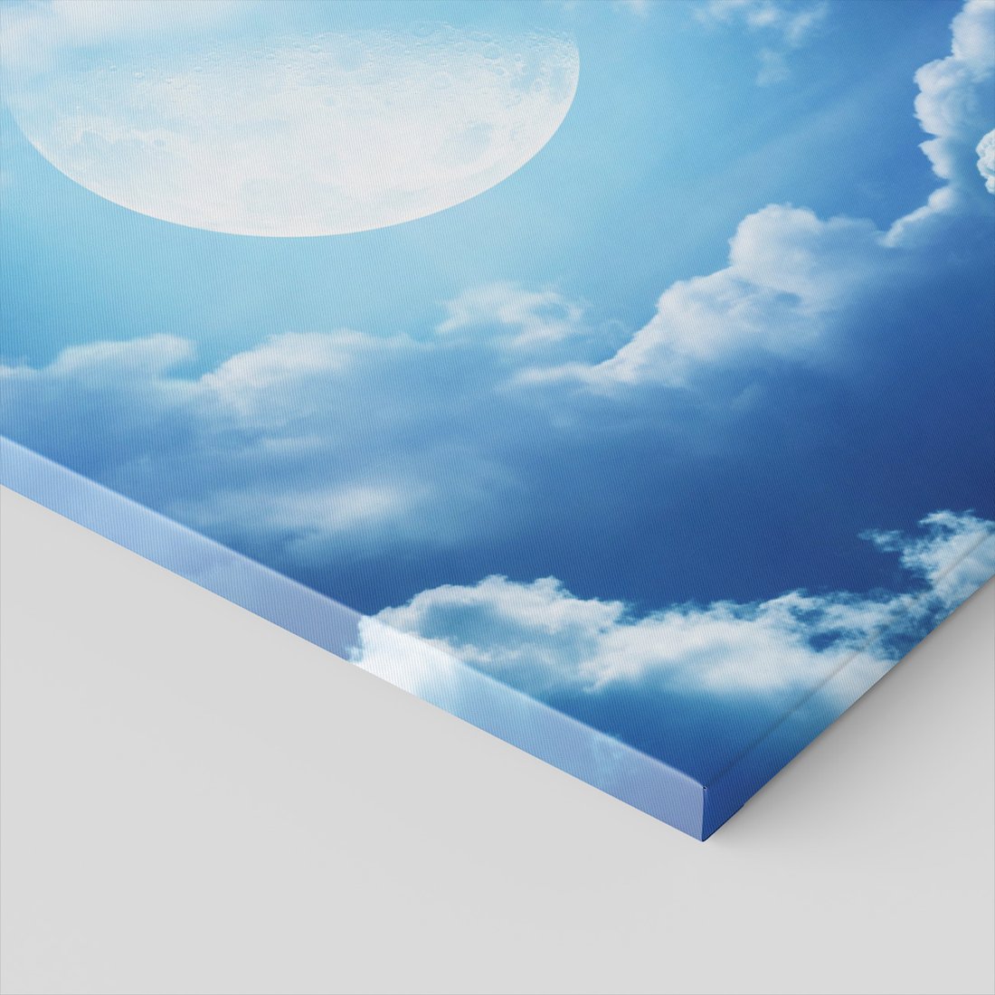 Obraz na płótnie z motywem księżyc, chmury, niebo to kwintesencja estetyki i trwałości. Dzięki łatwemu montażowi i uniwersalnemu wzornictwu, czyni go idealnym wyborem zarówno do codziennego użytku, jak i na wyrafinowany prezent.