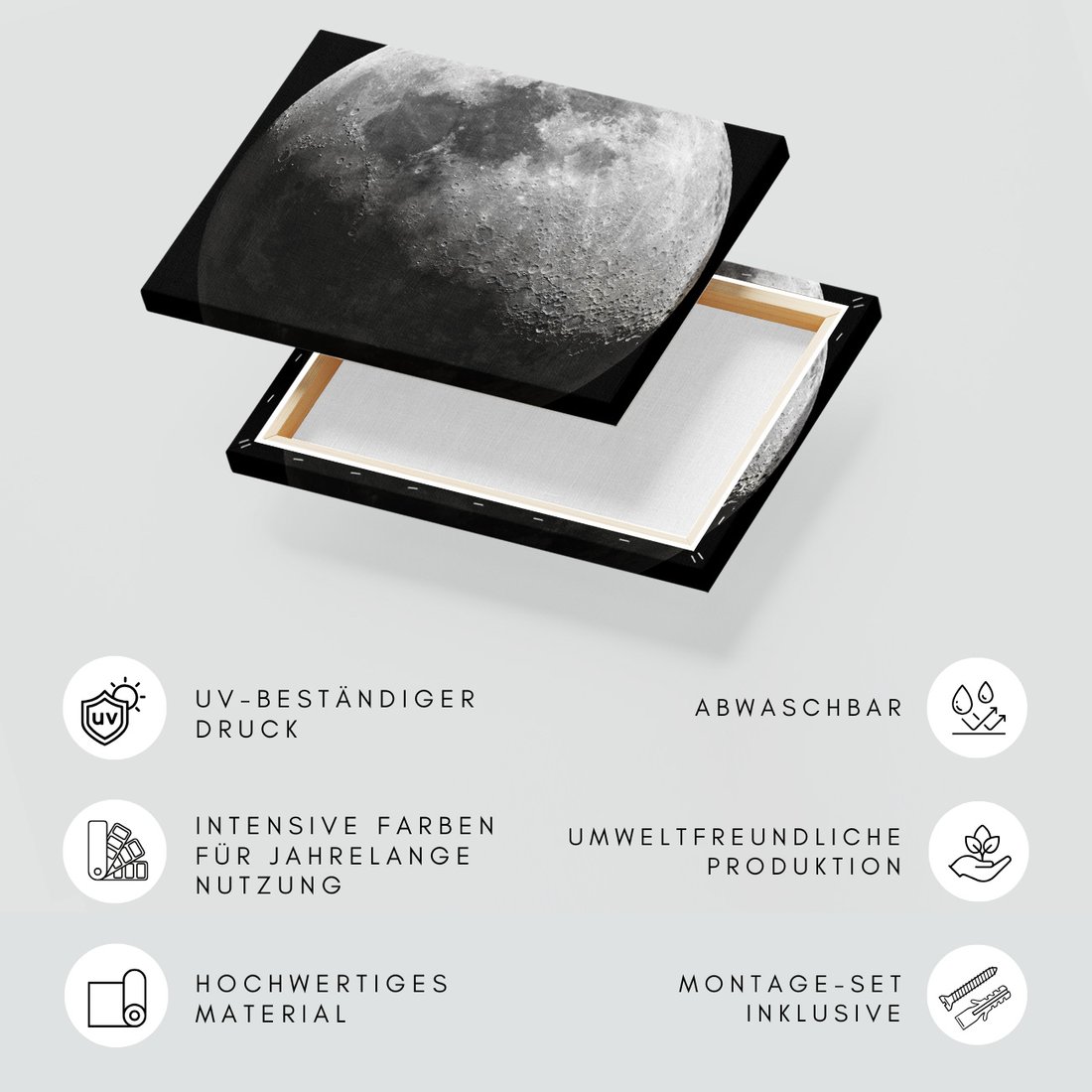 Obraz na płótnie z motywem księżyc, kratery, powierzchnia to kwintesencja estetyki i trwałości. Dzięki łatwemu montażowi i uniwersalnemu wzornictwu, czyni go idealnym wyborem zarówno do codziennego użytku, jak i na wyrafinowany prezent.