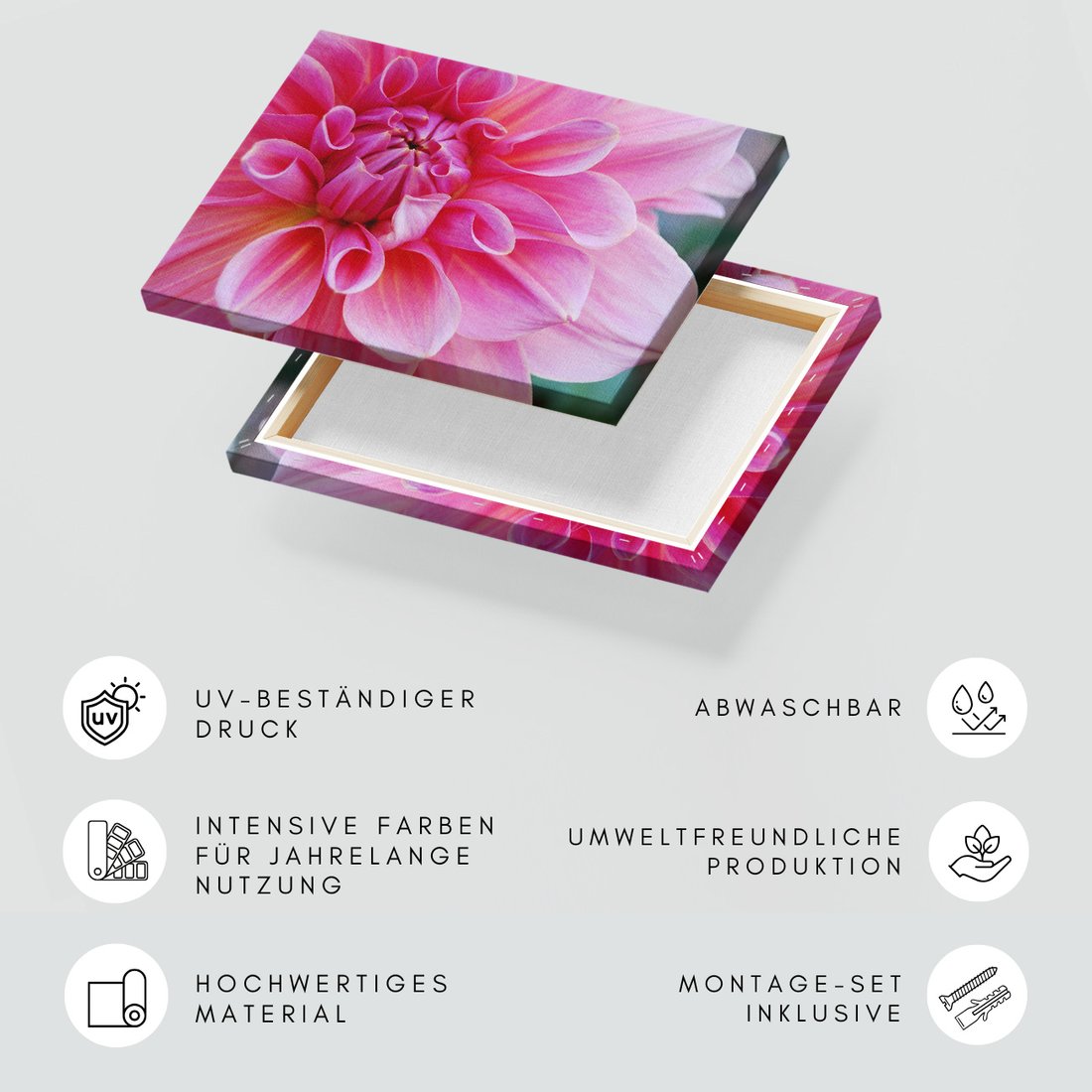 Obraz na płótnie z motywem kwiat, dalia, płatki to kwintesencja estetyki i trwałości. Dzięki łatwemu montażowi i uniwersalnemu wzornictwu, czyni go idealnym wyborem zarówno do codziennego użytku, jak i na wyrafinowany prezent.