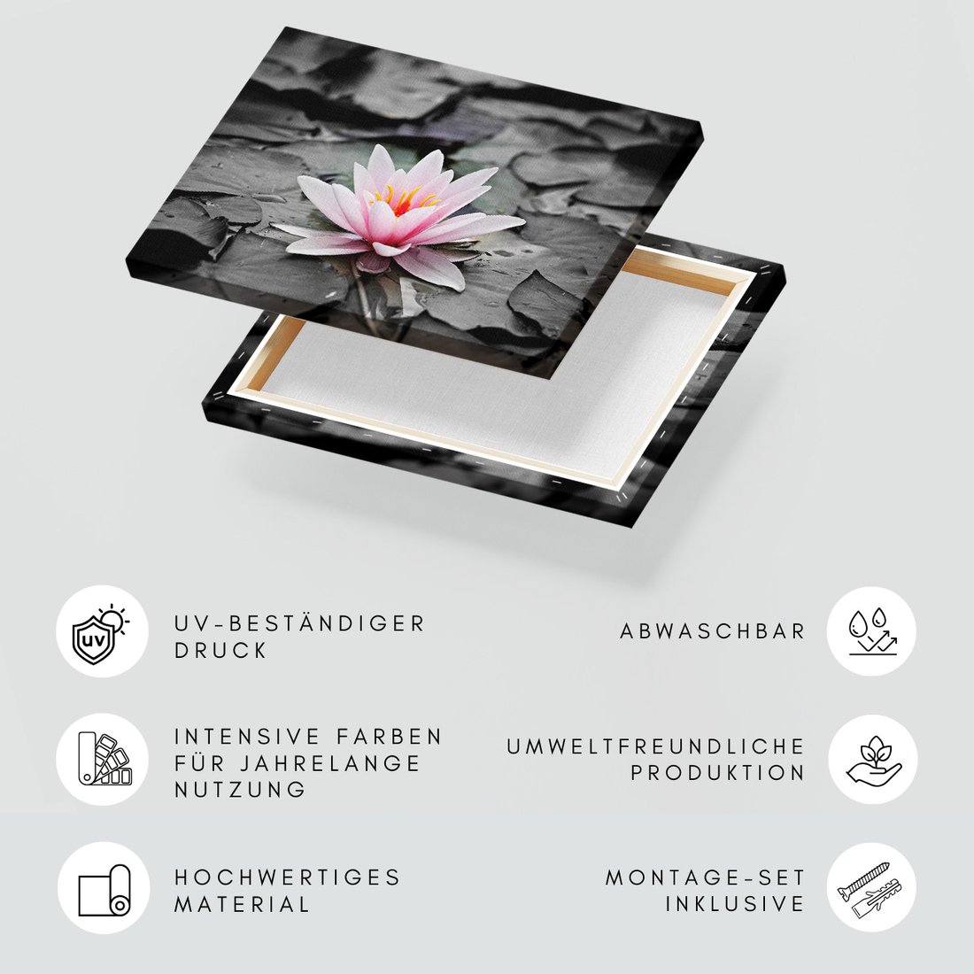 Obraz na płótnie z motywem kwiat, lilia wodna, staw to kwintesencja estetyki i trwałości. Dzięki łatwemu montażowi i uniwersalnemu wzornictwu, czyni go idealnym wyborem zarówno do codziennego użytku, jak i na wyrafinowany prezent.