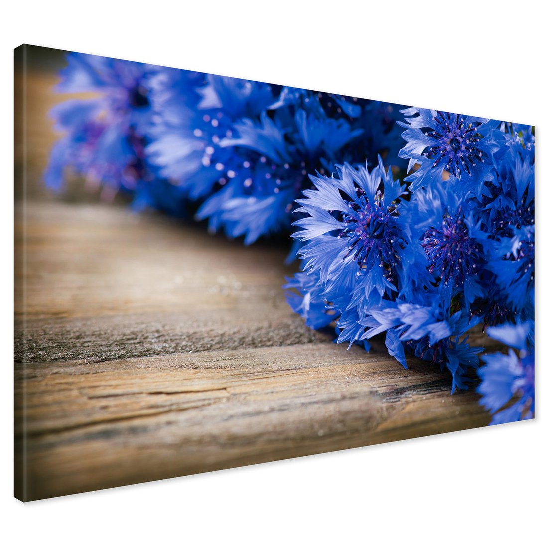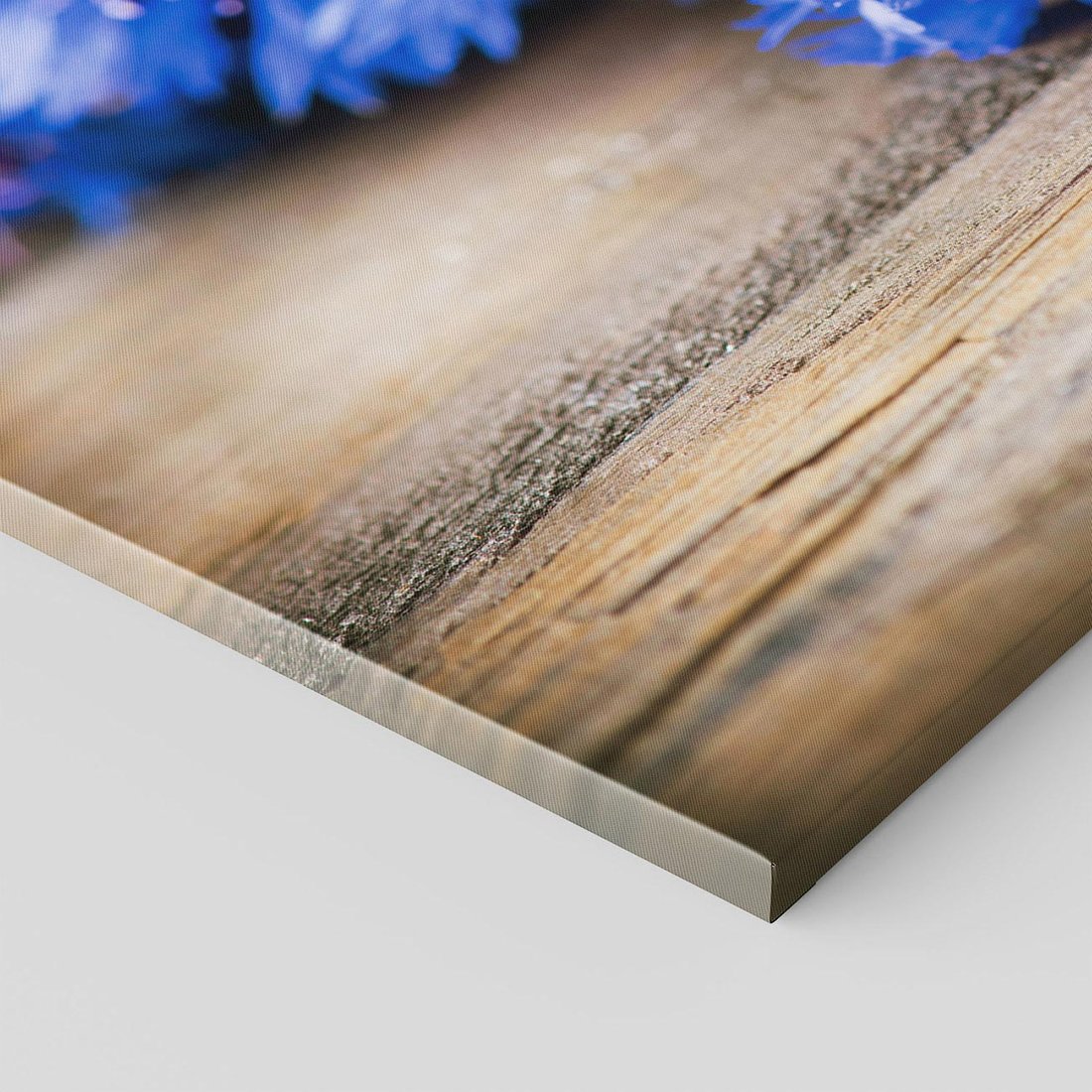 Obraz na płótnie - kwiaty, niebieski, drewno