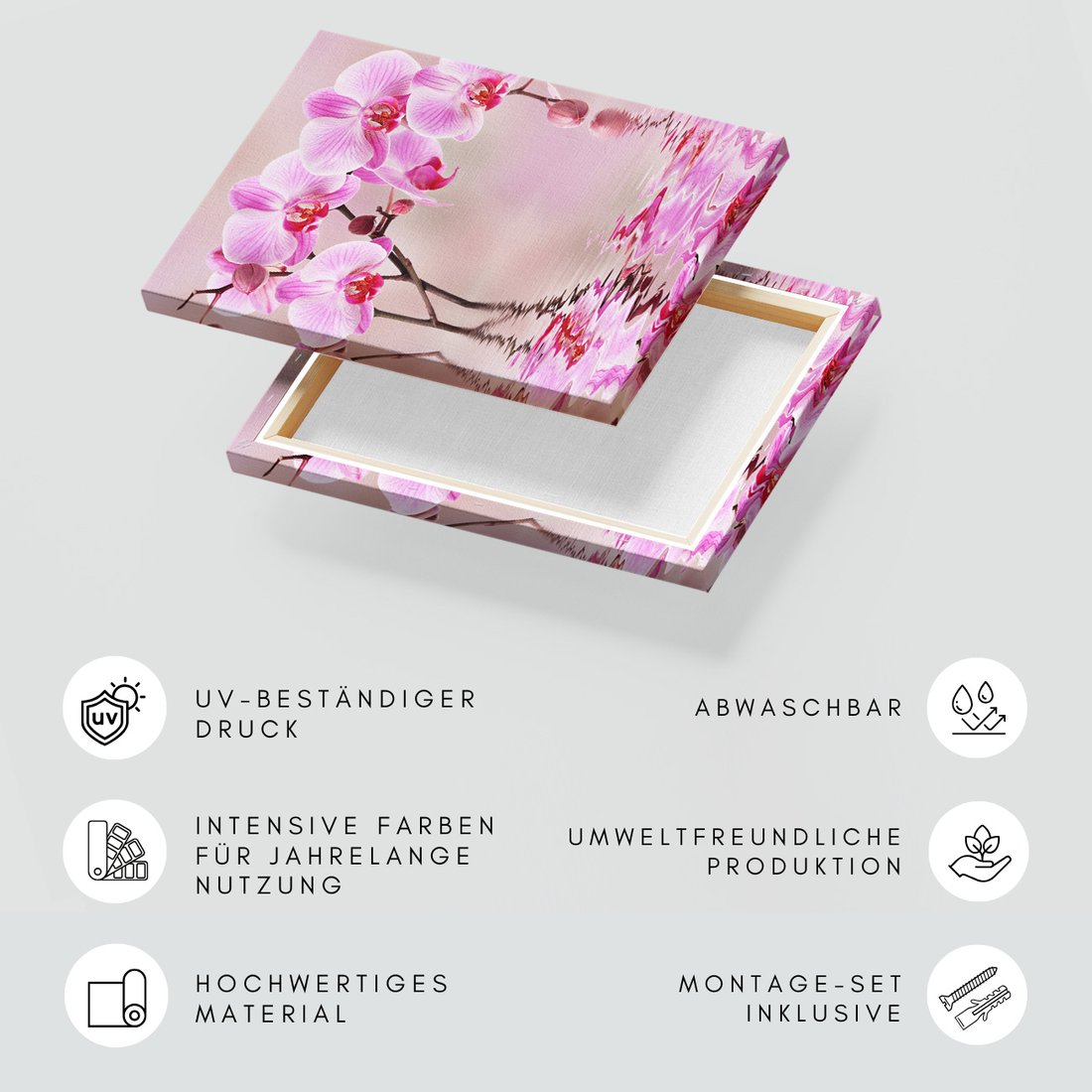 Obraz na płótnie z motywem kwiaty, orchidee, woda to kwintesencja estetyki i trwałości. Dzięki łatwemu montażowi i uniwersalnemu wzornictwu, czyni go idealnym wyborem zarówno do codziennego użytku, jak i na wyrafinowany prezent.