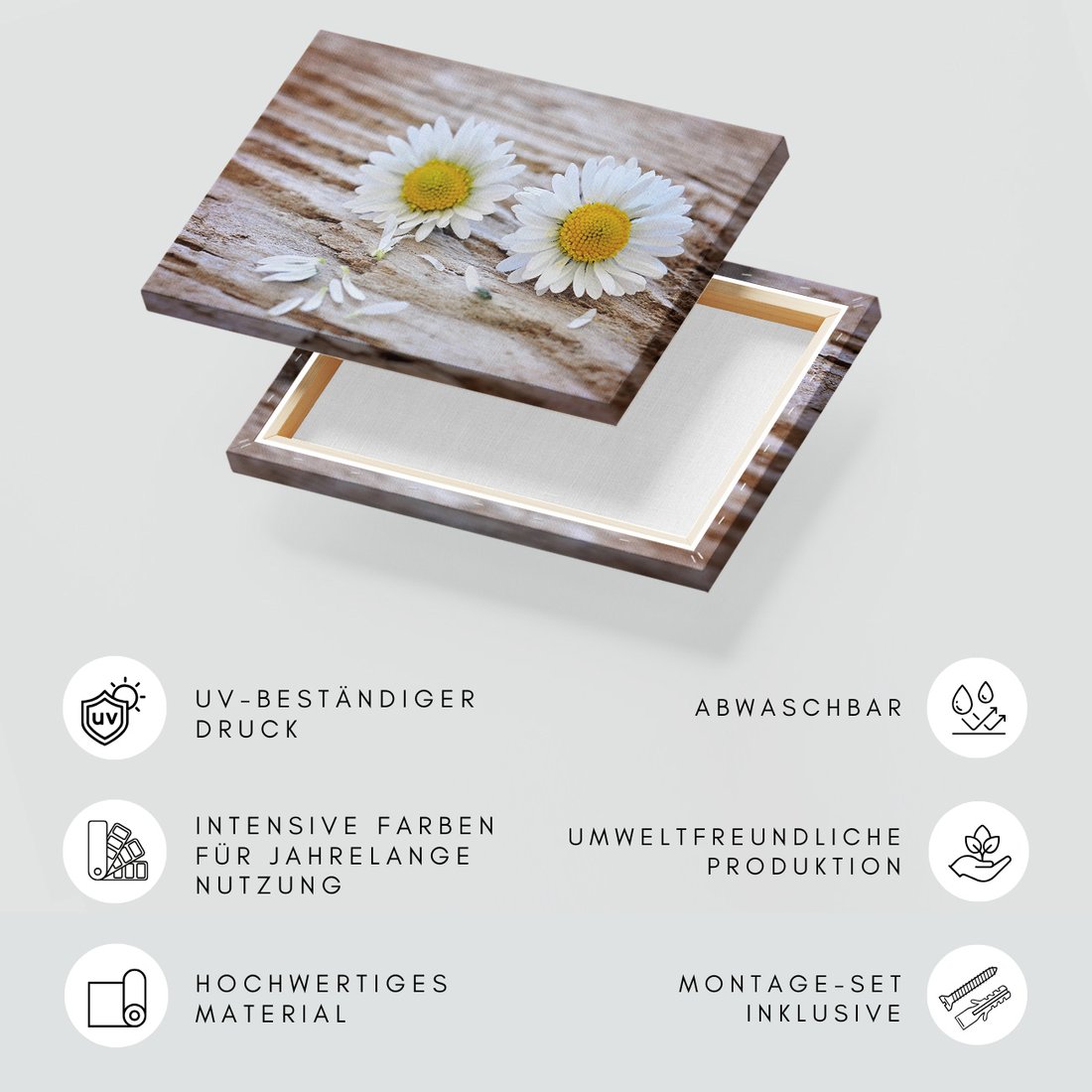 Obraz na płótnie z motywem kwiaty, stokrotki, natura to kwintesencja estetyki i trwałości. Dzięki łatwemu montażowi i uniwersalnemu wzornictwu, czyni go idealnym wyborem zarówno do codziennego użytku, jak i na wyrafinowany prezent.