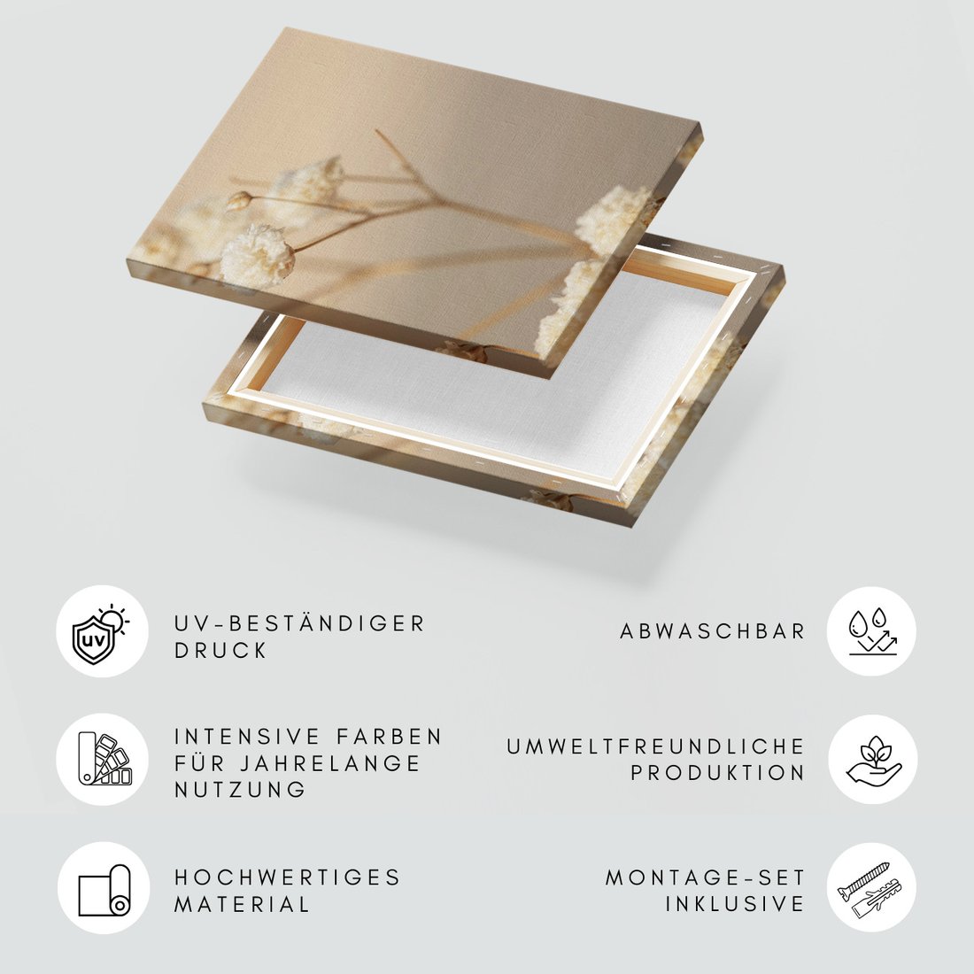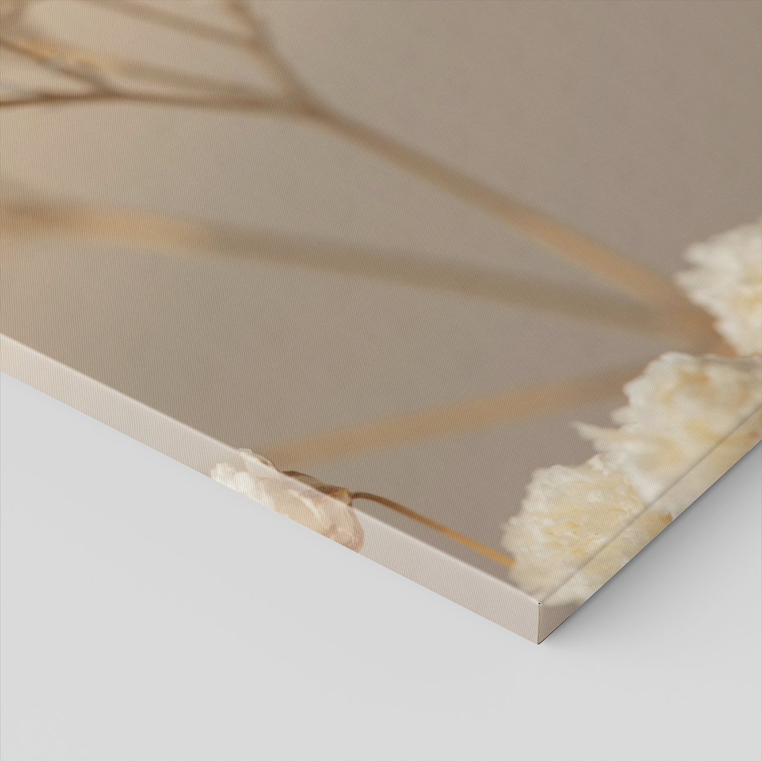 Obraz na płótnie z motywem kwiaty, suszone, delikatne to kwintesencja estetyki i trwałości. Dzięki łatwemu montażowi i uniwersalnemu wzornictwu, czyni go idealnym wyborem zarówno do codziennego użytku, jak i na wyrafinowany prezent.