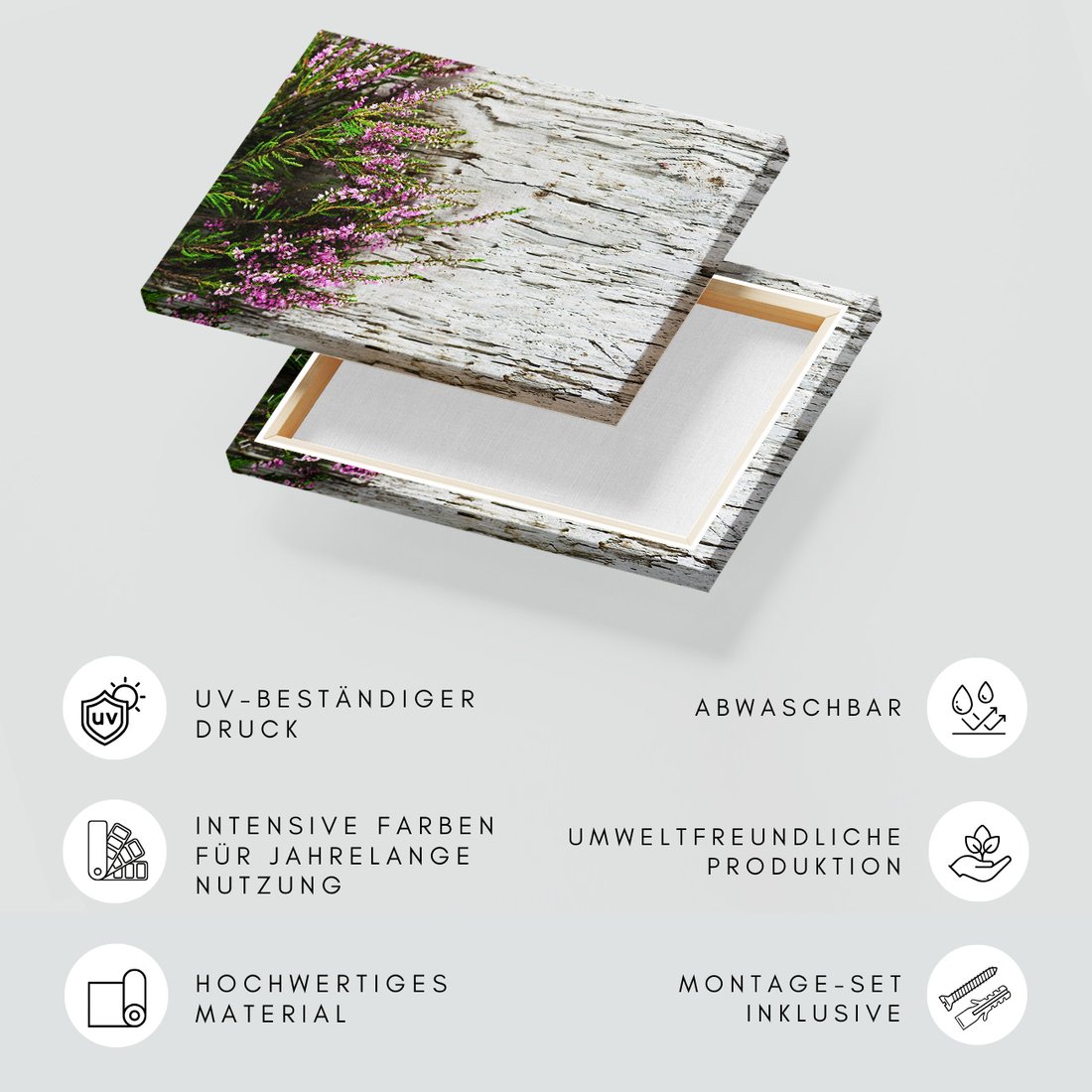 Obraz na płótnie z motywem kwiaty, wrzos, drewno to kwintesencja estetyki i trwałości. Dzięki łatwemu montażowi i uniwersalnemu wzornictwu, czyni go idealnym wyborem zarówno do codziennego użytku, jak i na wyrafinowany prezent.