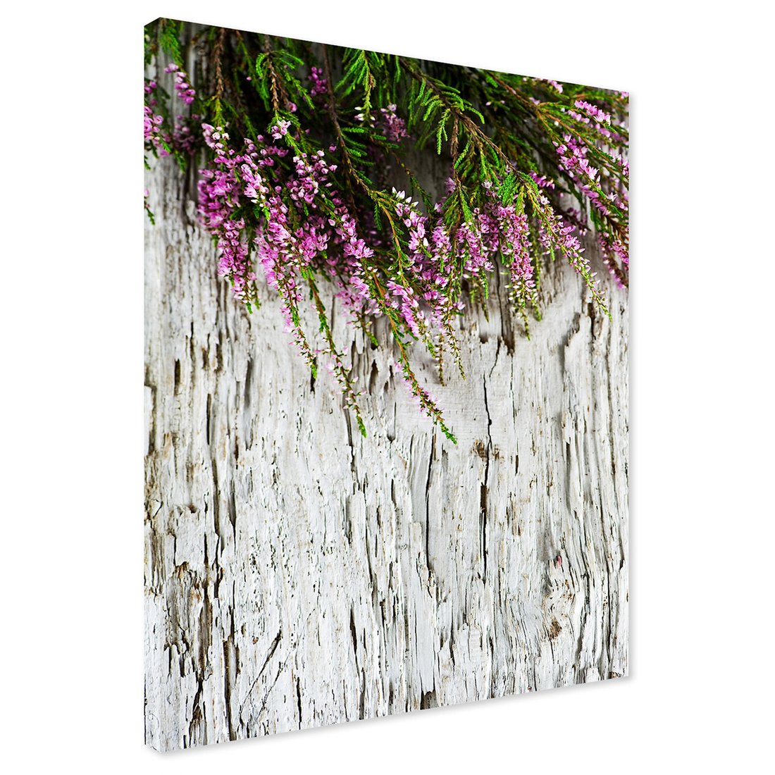 Obraz na płótnie - kwiaty, wrzos, drewno