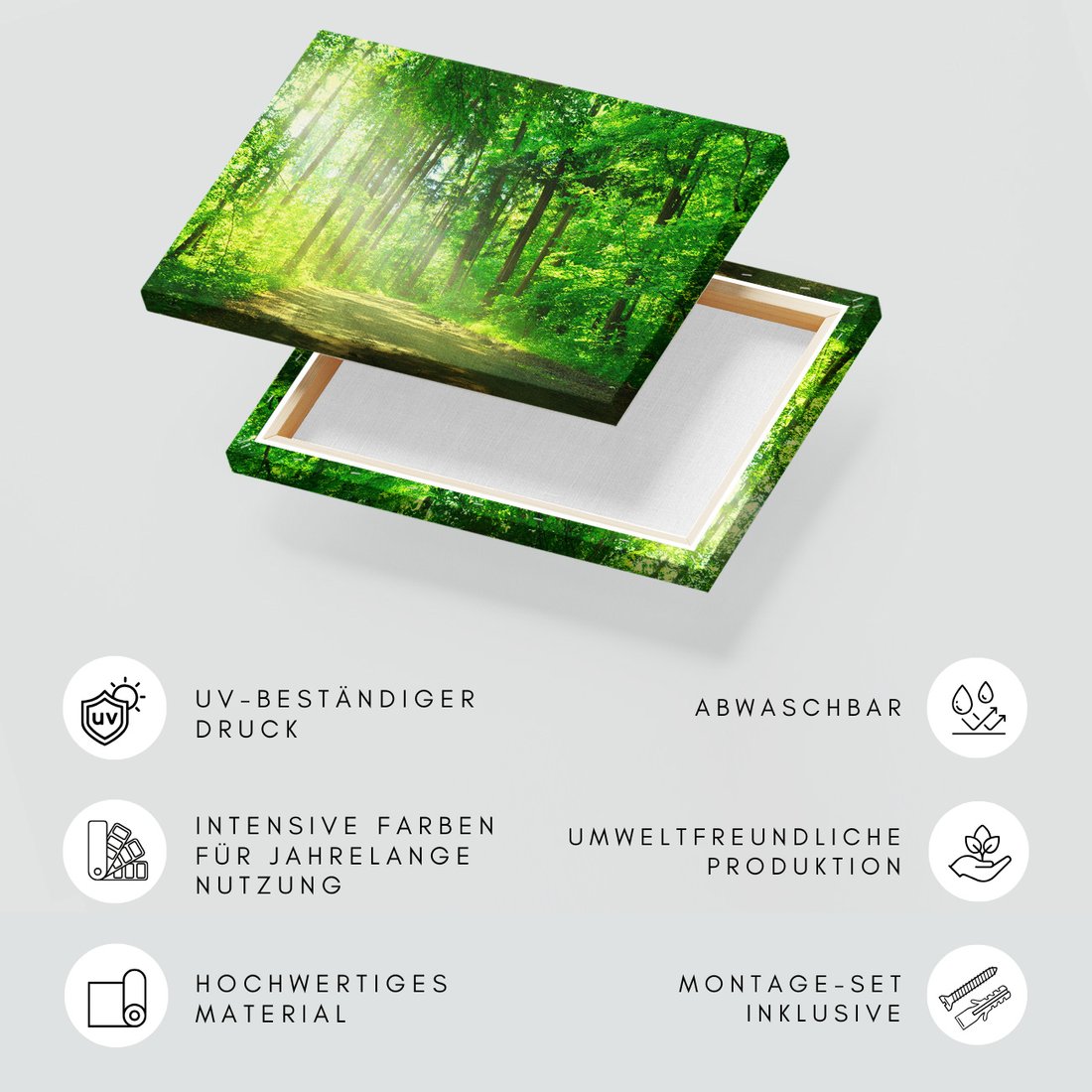 Obraz na płótnie z motywem las, droga, drzewa to kwintesencja estetyki i trwałości. Dzięki łatwemu montażowi i uniwersalnemu wzornictwu, czyni go idealnym wyborem zarówno do codziennego użytku, jak i na wyrafinowany prezent.