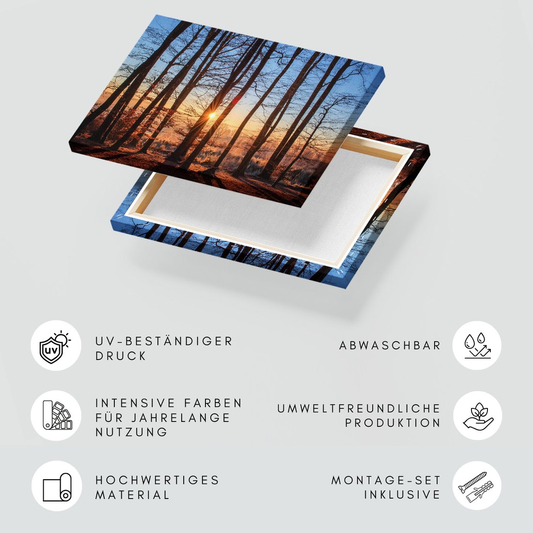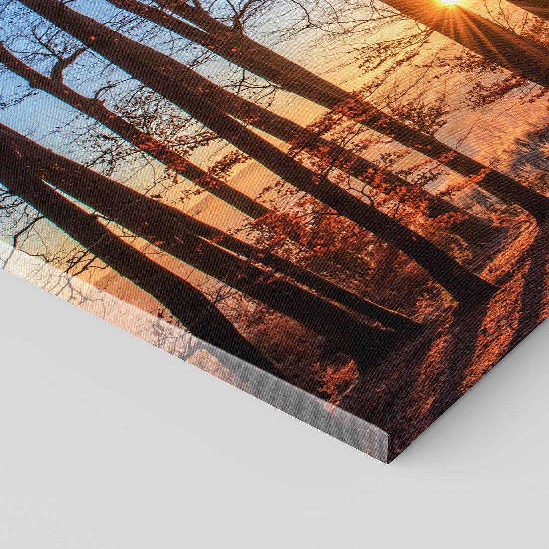 Obraz na płótnie z motywem las, drzewa, słońce to kwintesencja estetyki i trwałości. Dzięki łatwemu montażowi i uniwersalnemu wzornictwu, czyni go idealnym wyborem zarówno do codziennego użytku, jak i na wyrafinowany prezent.