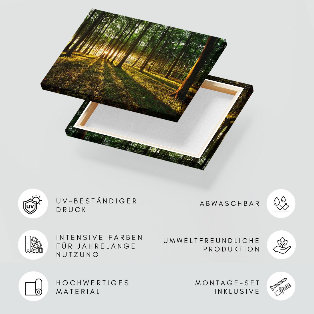 Obraz na płótnie z motywem las, drzewa, światło to kwintesencja estetyki i trwałości. Dzięki łatwemu montażowi i uniwersalnemu wzornictwu, czyni go idealnym wyborem zarówno do codziennego użytku, jak i na wyrafinowany prezent.