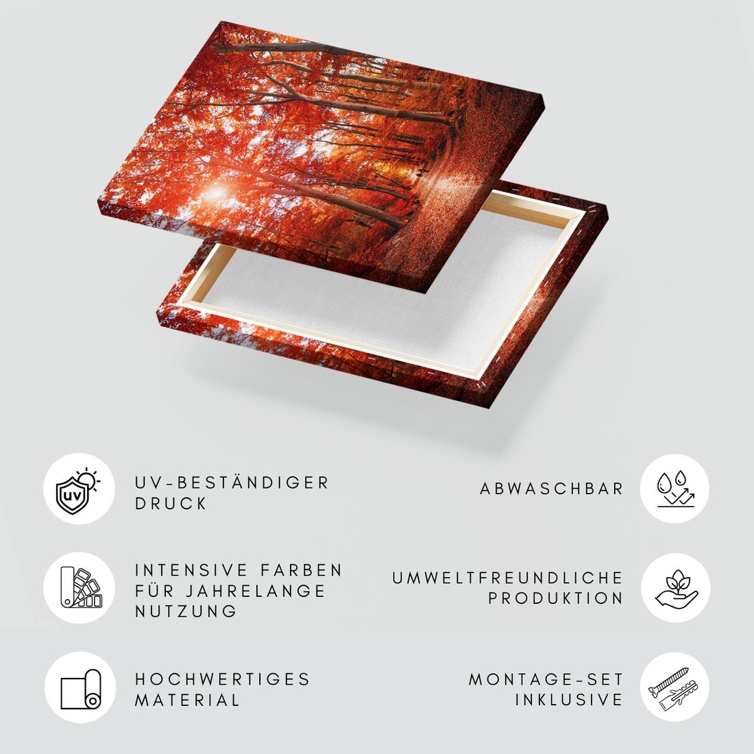 Obraz na płótnie z motywem las, jesień, drzewa to kwintesencja estetyki i trwałości. Dzięki łatwemu montażowi i uniwersalnemu wzornictwu, czyni go idealnym wyborem zarówno do codziennego użytku, jak i na wyrafinowany prezent.