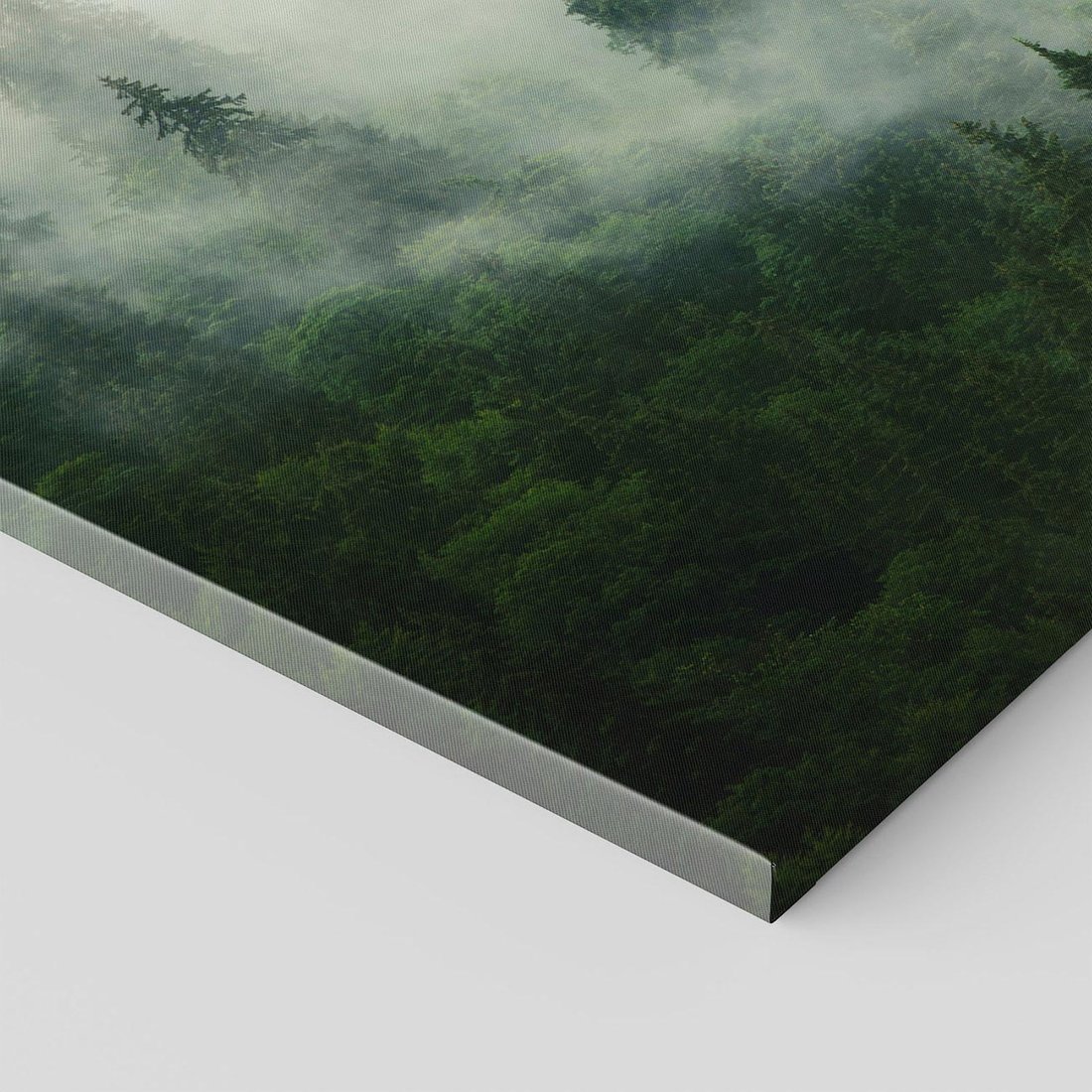 Obraz na płótnie z motywem las, mgła, drzewa to kwintesencja estetyki i trwałości. Dzięki łatwemu montażowi i uniwersalnemu wzornictwu, czyni go idealnym wyborem zarówno do codziennego użytku, jak i na wyrafinowany prezent.