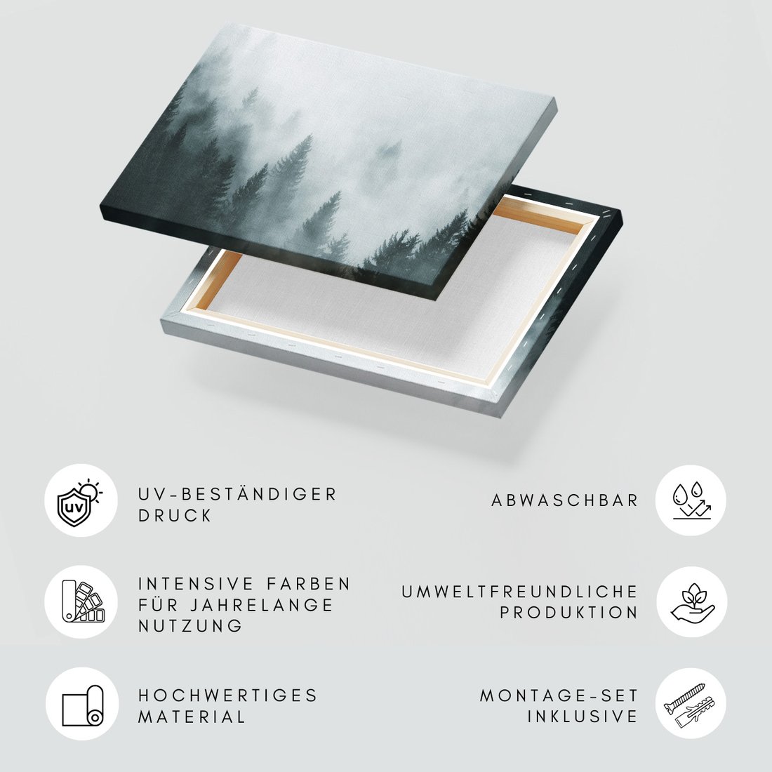 Obraz na płótnie z motywem las, mgła, drzewa to kwintesencja estetyki i trwałości. Dzięki łatwemu montażowi i uniwersalnemu wzornictwu, czyni go idealnym wyborem zarówno do codziennego użytku, jak i na wyrafinowany prezent.