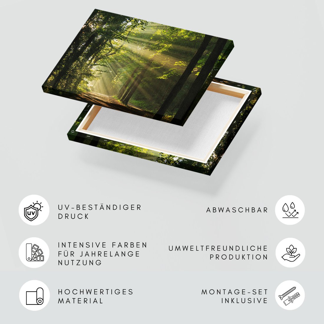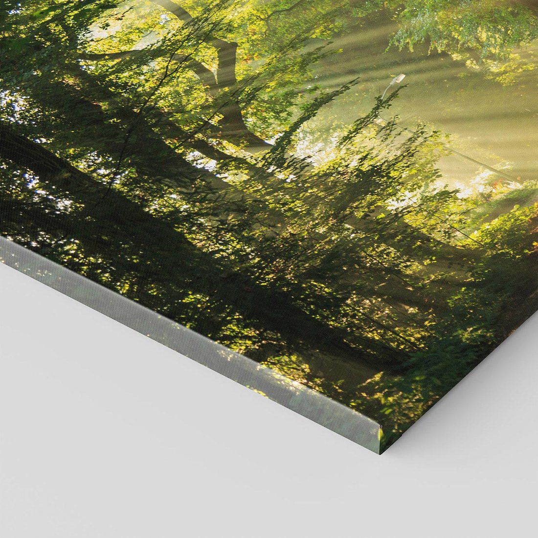 Obraz na płótnie z motywem las, światło, drzewa to kwintesencja estetyki i trwałości. Dzięki łatwemu montażowi i uniwersalnemu wzornictwu, czyni go idealnym wyborem zarówno do codziennego użytku, jak i na wyrafinowany prezent.