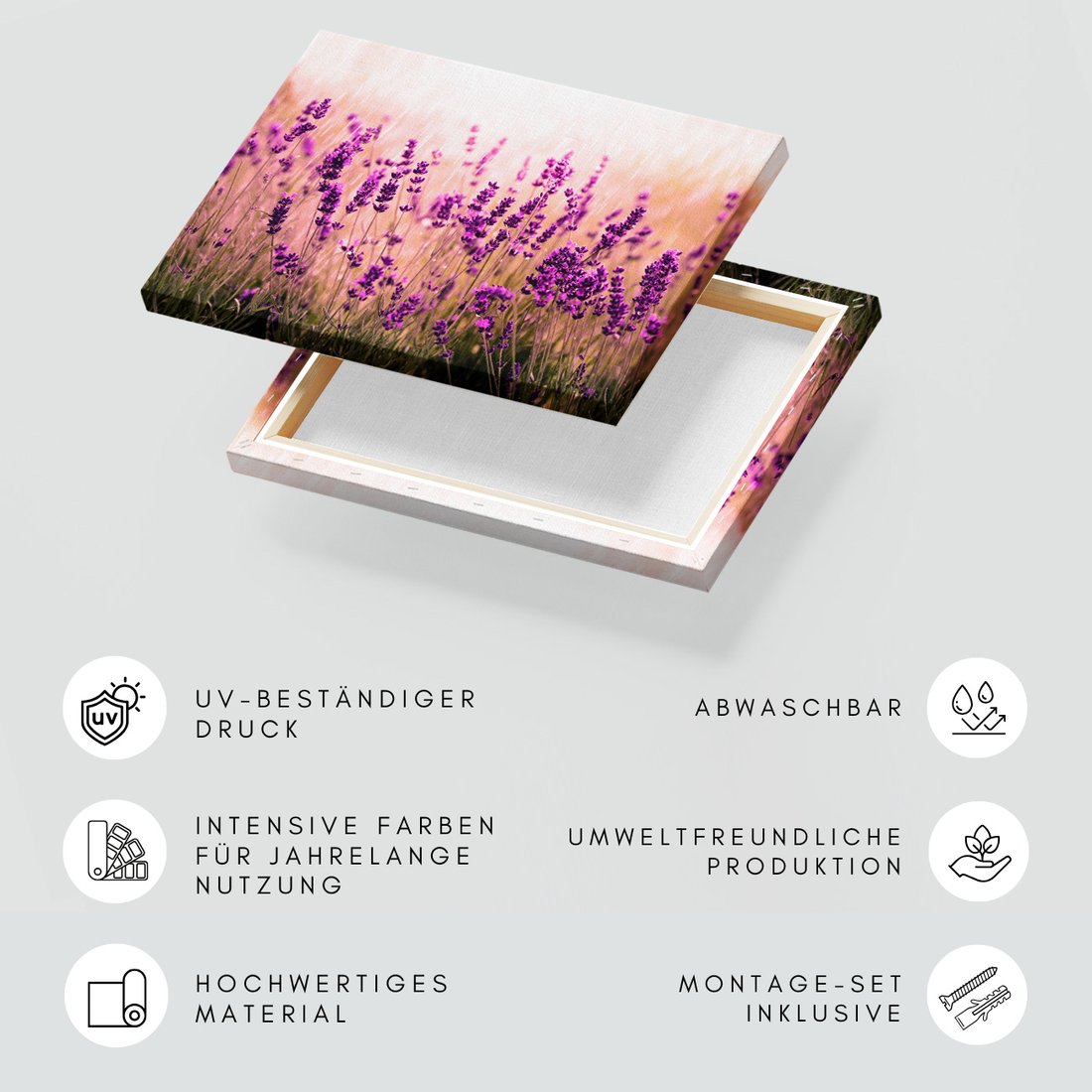 Obraz na płótnie z motywem lawenda, kwiaty, pole to kwintesencja estetyki i trwałości. Dzięki łatwemu montażowi i uniwersalnemu wzornictwu, czyni go idealnym wyborem zarówno do codziennego użytku, jak i na wyrafinowany prezent.