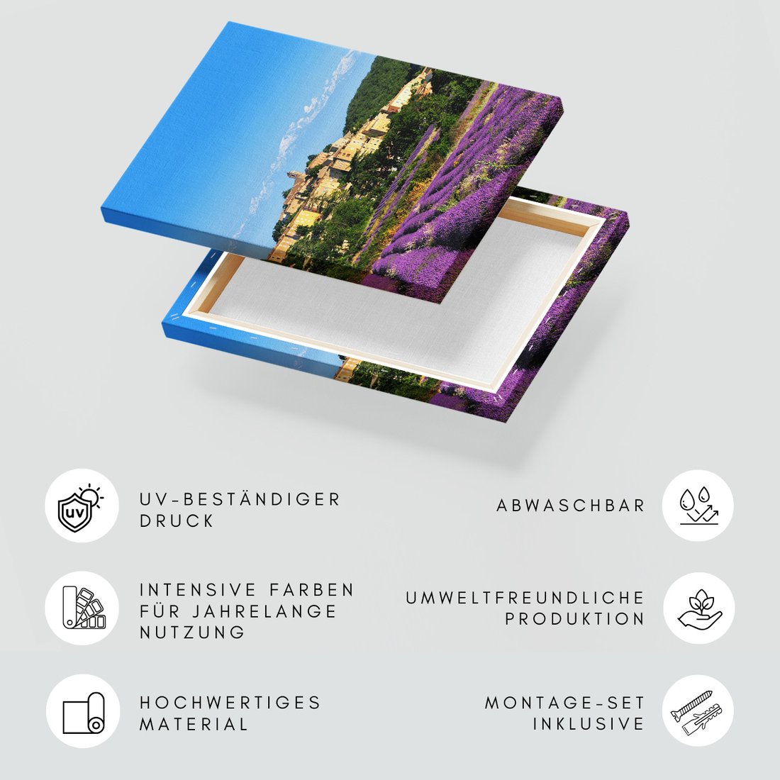 Obraz na płótnie z motywem lawenda, miasto, góry to kwintesencja estetyki i trwałości. Dzięki łatwemu montażowi i uniwersalnemu wzornictwu, czyni go idealnym wyborem zarówno do codziennego użytku, jak i na wyrafinowany prezent.