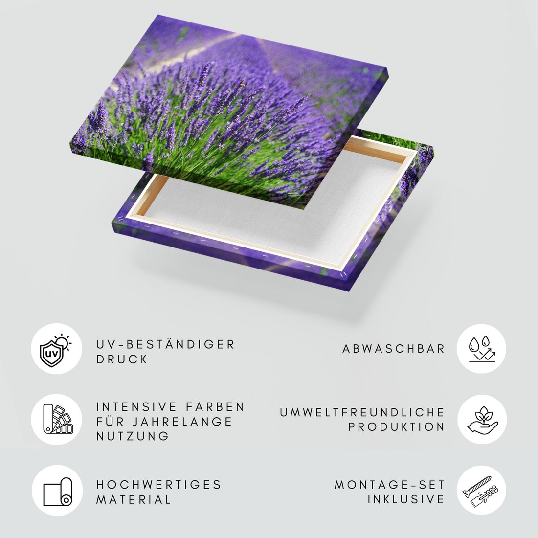 Obraz na płótnie z motywem lawenda, pole, kwiaty to kwintesencja estetyki i trwałości. Dzięki łatwemu montażowi i uniwersalnemu wzornictwu, czyni go idealnym wyborem zarówno do codziennego użytku, jak i na wyrafinowany prezent.