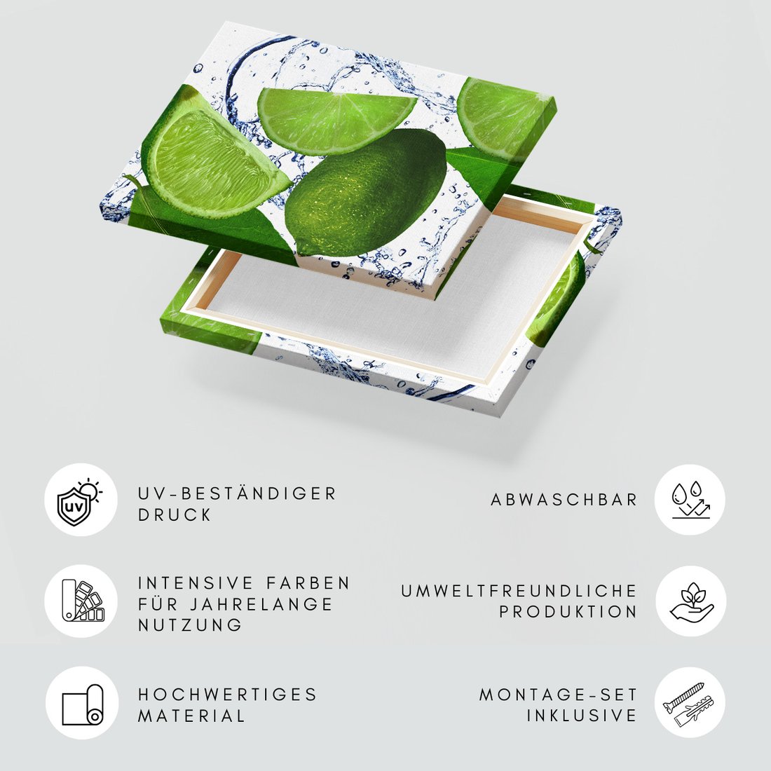 Obraz na płótnie z motywem limonka, owoce, świeżość to kwintesencja estetyki i trwałości. Dzięki łatwemu montażowi i uniwersalnemu wzornictwu, czyni go idealnym wyborem zarówno do codziennego użytku, jak i na wyrafinowany prezent.