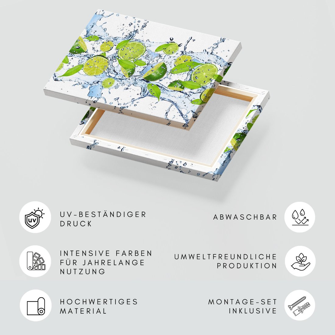 Obraz na płótnie z motywem limonka, woda, liście to kwintesencja estetyki i trwałości. Dzięki łatwemu montażowi i uniwersalnemu wzornictwu, czyni go idealnym wyborem zarówno do codziennego użytku, jak i na wyrafinowany prezent.