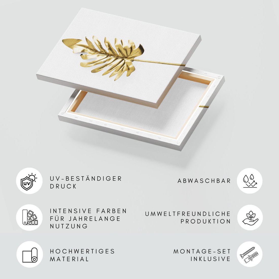 Obraz na płótnie z motywem liść, złoty, metaliczny to kwintesencja estetyki i trwałości. Dzięki łatwemu montażowi i uniwersalnemu wzornictwu, czyni go idealnym wyborem zarówno do codziennego użytku, jak i na wyrafinowany prezent.