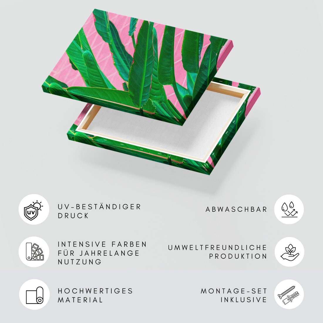 Obraz na płótnie z motywem liście, roślina, różowy to kwintesencja estetyki i trwałości. Dzięki łatwemu montażowi i uniwersalnemu wzornictwu, czyni go idealnym wyborem zarówno do codziennego użytku, jak i na wyrafinowany prezent.