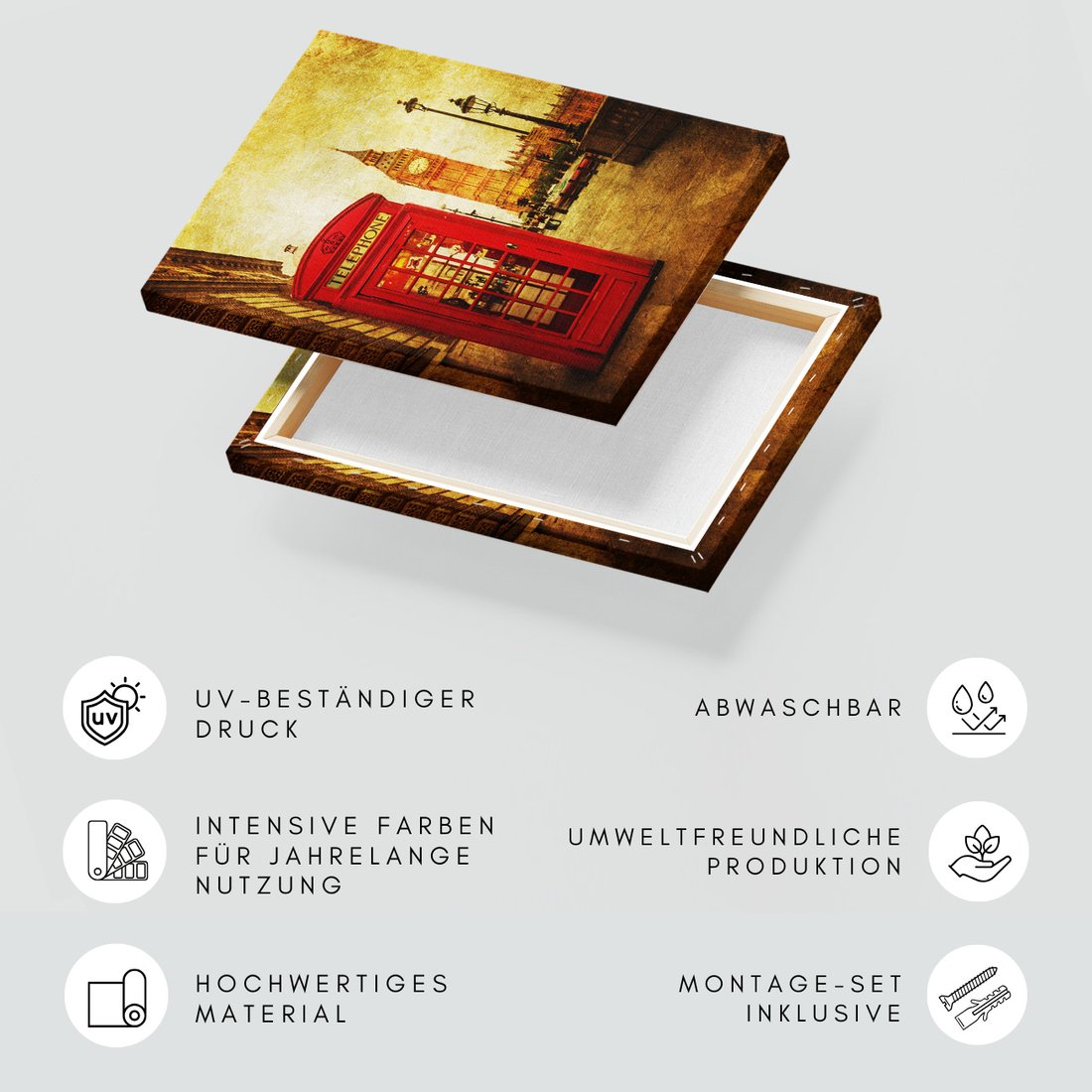 Obraz na płótnie z motywem Londyn, budka telefoniczna, Big Ben to kwintesencja estetyki i trwałości. Dzięki łatwemu montażowi i uniwersalnemu wzornictwu, czyni go idealnym wyborem zarówno do codziennego użytku, jak i na wyrafinowany prezent.