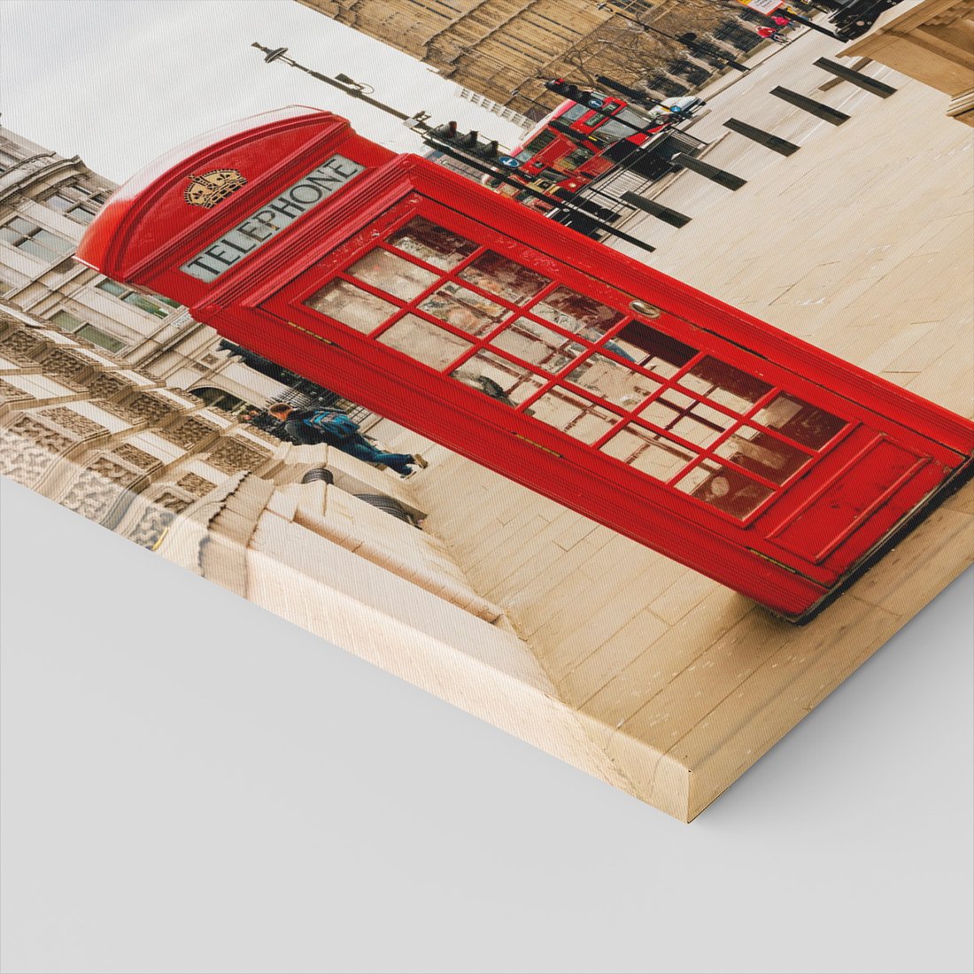 Obraz na płótnie z motywem Londyn, budka telefoniczna, miasto to kwintesencja estetyki i trwałości. Dzięki łatwemu montażowi i uniwersalnemu wzornictwu, czyni go idealnym wyborem zarówno do codziennego użytku, jak i na wyrafinowany prezent.
