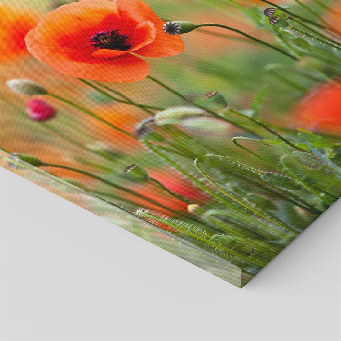 Obraz na płótnie z motywem maki, kwiaty, lato to kwintesencja estetyki i trwałości. Dzięki łatwemu montażowi i uniwersalnemu wzornictwu, czyni go idealnym wyborem zarówno do codziennego użytku, jak i na wyrafinowany prezent.