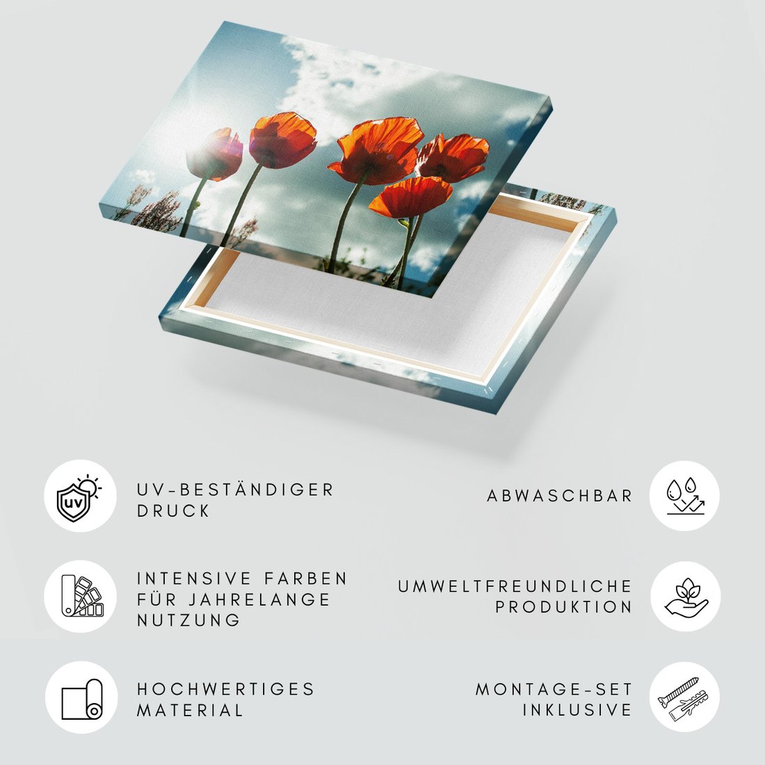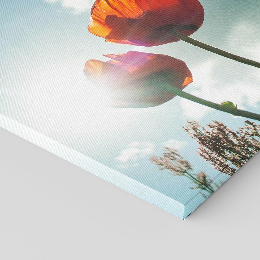 Obraz na płótnie z motywem maki, kwiaty, niebo to kwintesencja estetyki i trwałości. Dzięki łatwemu montażowi i uniwersalnemu wzornictwu, czyni go idealnym wyborem zarówno do codziennego użytku, jak i na wyrafinowany prezent.