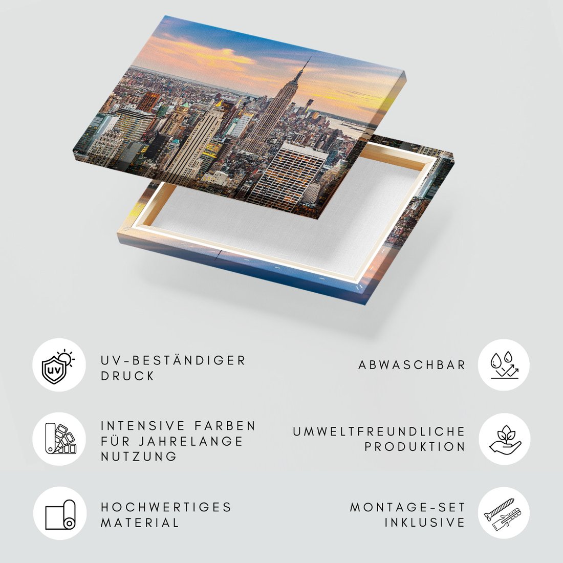 Obraz na płótnie z motywem miasto, drapacze chmur, panorama to kwintesencja estetyki i trwałości. Dzięki łatwemu montażowi i uniwersalnemu wzornictwu, czyni go idealnym wyborem zarówno do codziennego użytku, jak i na wyrafinowany prezent.