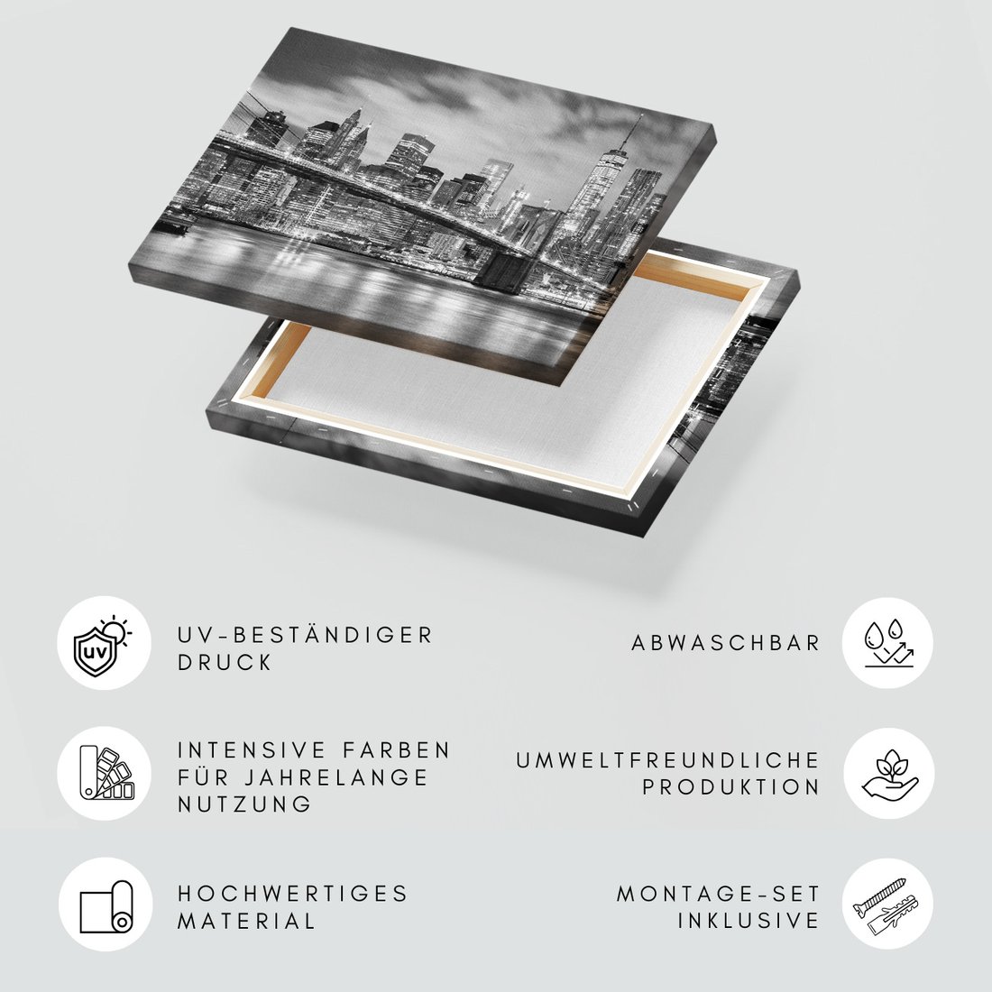 Obraz na płótnie z motywem miasto, most, Manhattan to kwintesencja estetyki i trwałości. Dzięki łatwemu montażowi i uniwersalnemu wzornictwu, czyni go idealnym wyborem zarówno do codziennego użytku, jak i na wyrafinowany prezent.