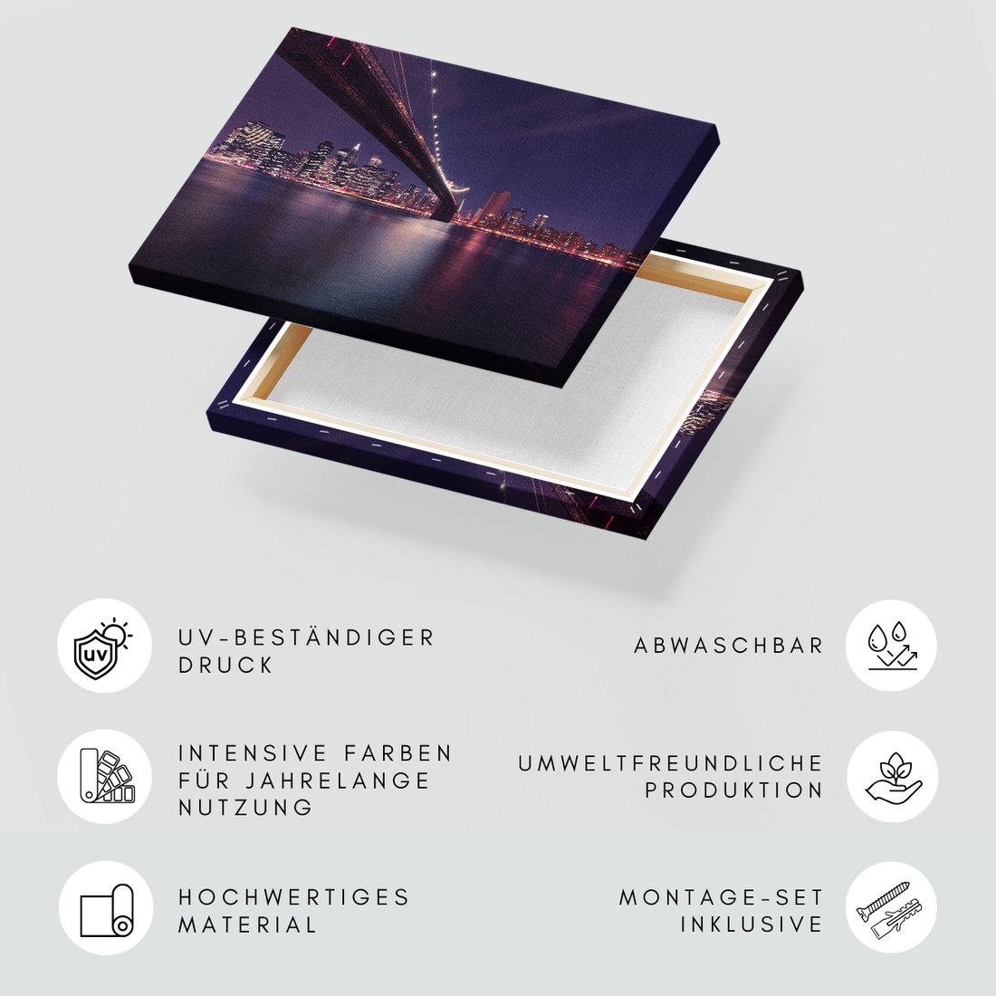 Obraz na płótnie z motywem miasto, most, noc to kwintesencja estetyki i trwałości. Dzięki łatwemu montażowi i uniwersalnemu wzornictwu, czyni go idealnym wyborem zarówno do codziennego użytku, jak i na wyrafinowany prezent.