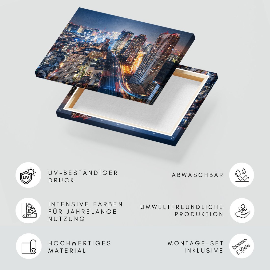 Obraz na płótnie z motywem miasto, noc, budynki to kwintesencja estetyki i trwałości. Dzięki łatwemu montażowi i uniwersalnemu wzornictwu, czyni go idealnym wyborem zarówno do codziennego użytku, jak i na wyrafinowany prezent.