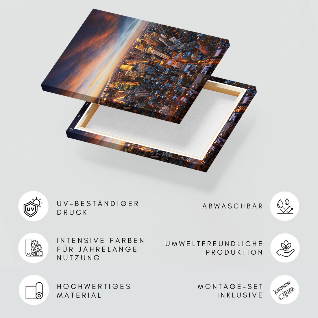Obraz na płótnie z motywem miasto, noc, budynki to kwintesencja estetyki i trwałości. Dzięki łatwemu montażowi i uniwersalnemu wzornictwu, czyni go idealnym wyborem zarówno do codziennego użytku, jak i na wyrafinowany prezent.