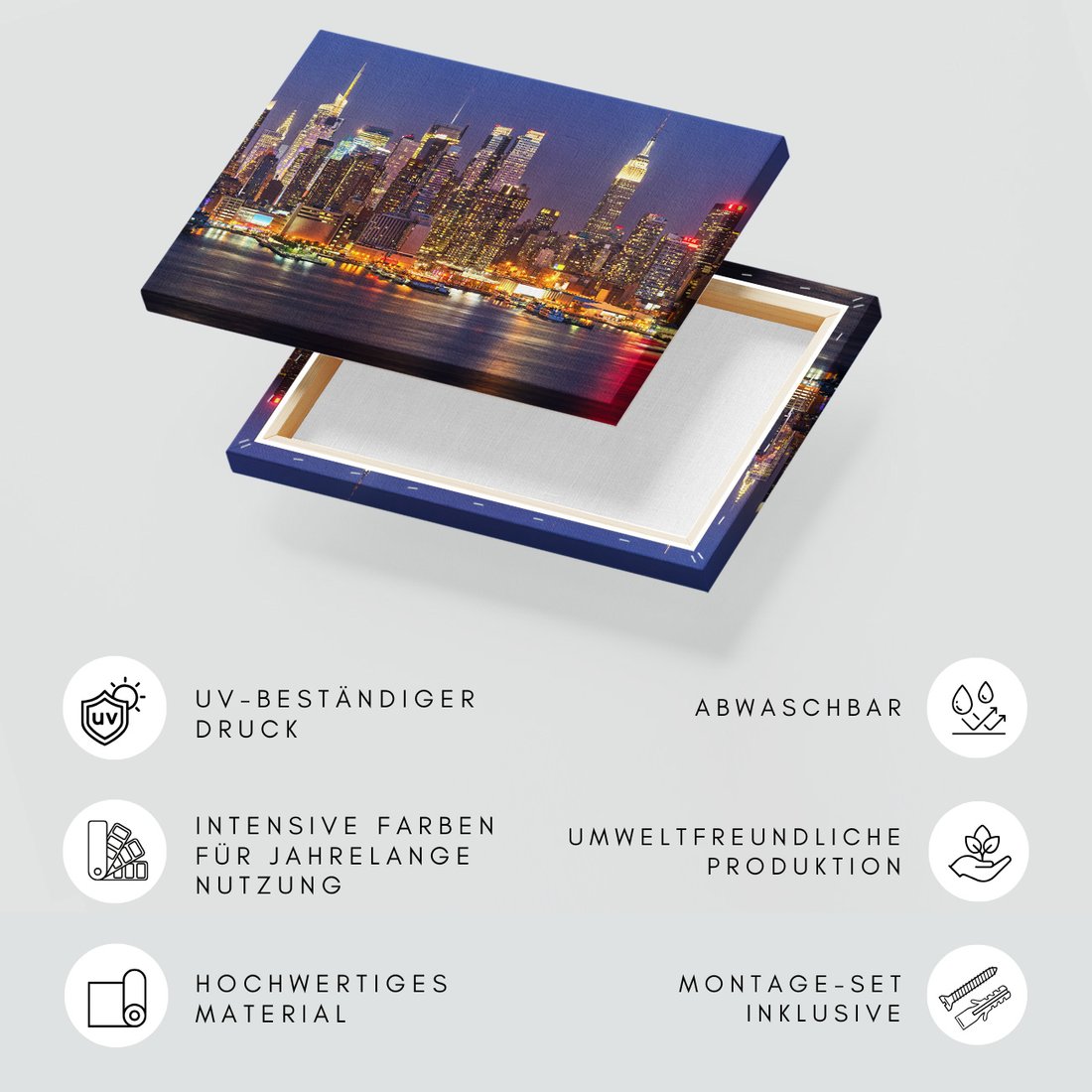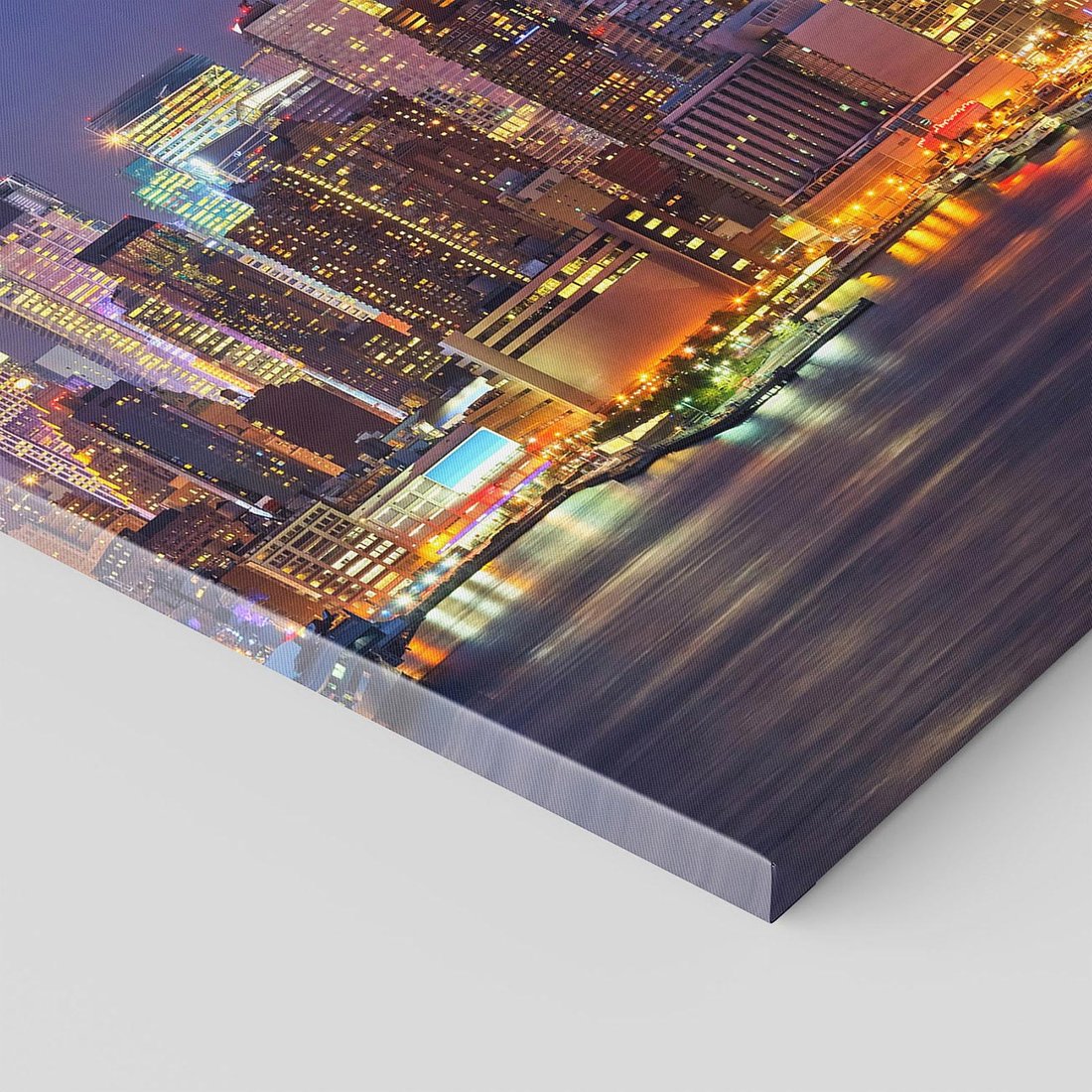 Obraz na płótnie z motywem miasto, noc, panorama to kwintesencja estetyki i trwałości. Dzięki łatwemu montażowi i uniwersalnemu wzornictwu, czyni go idealnym wyborem zarówno do codziennego użytku, jak i na wyrafinowany prezent.