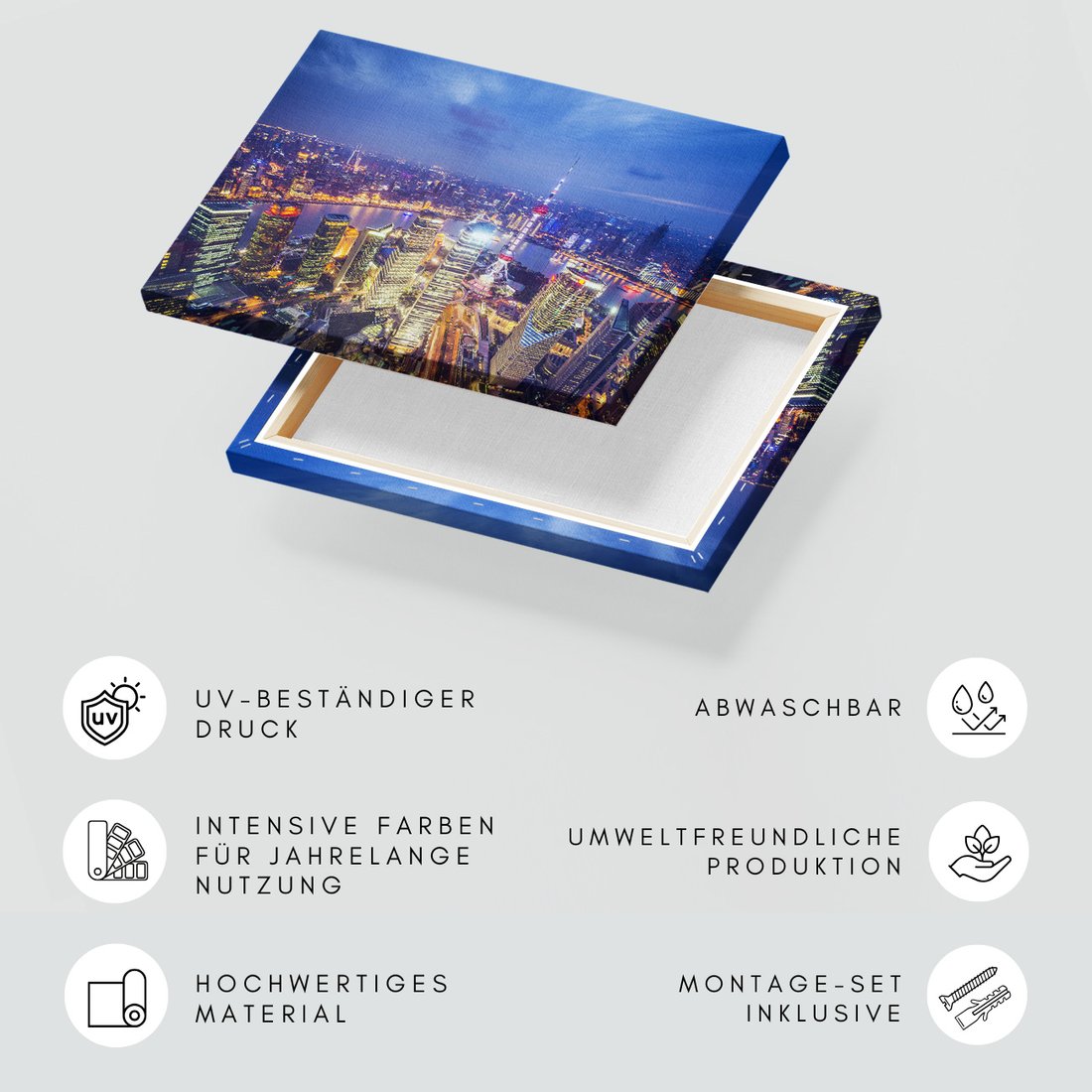 Obraz na płótnie z motywem miasto, noc, panorama to kwintesencja estetyki i trwałości. Dzięki łatwemu montażowi i uniwersalnemu wzornictwu, czyni go idealnym wyborem zarówno do codziennego użytku, jak i na wyrafinowany prezent.