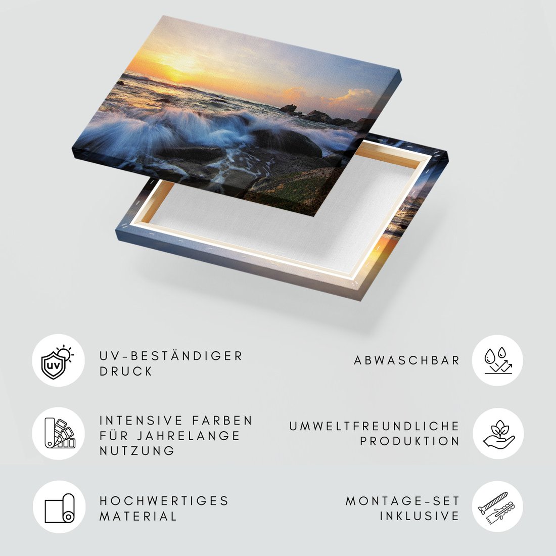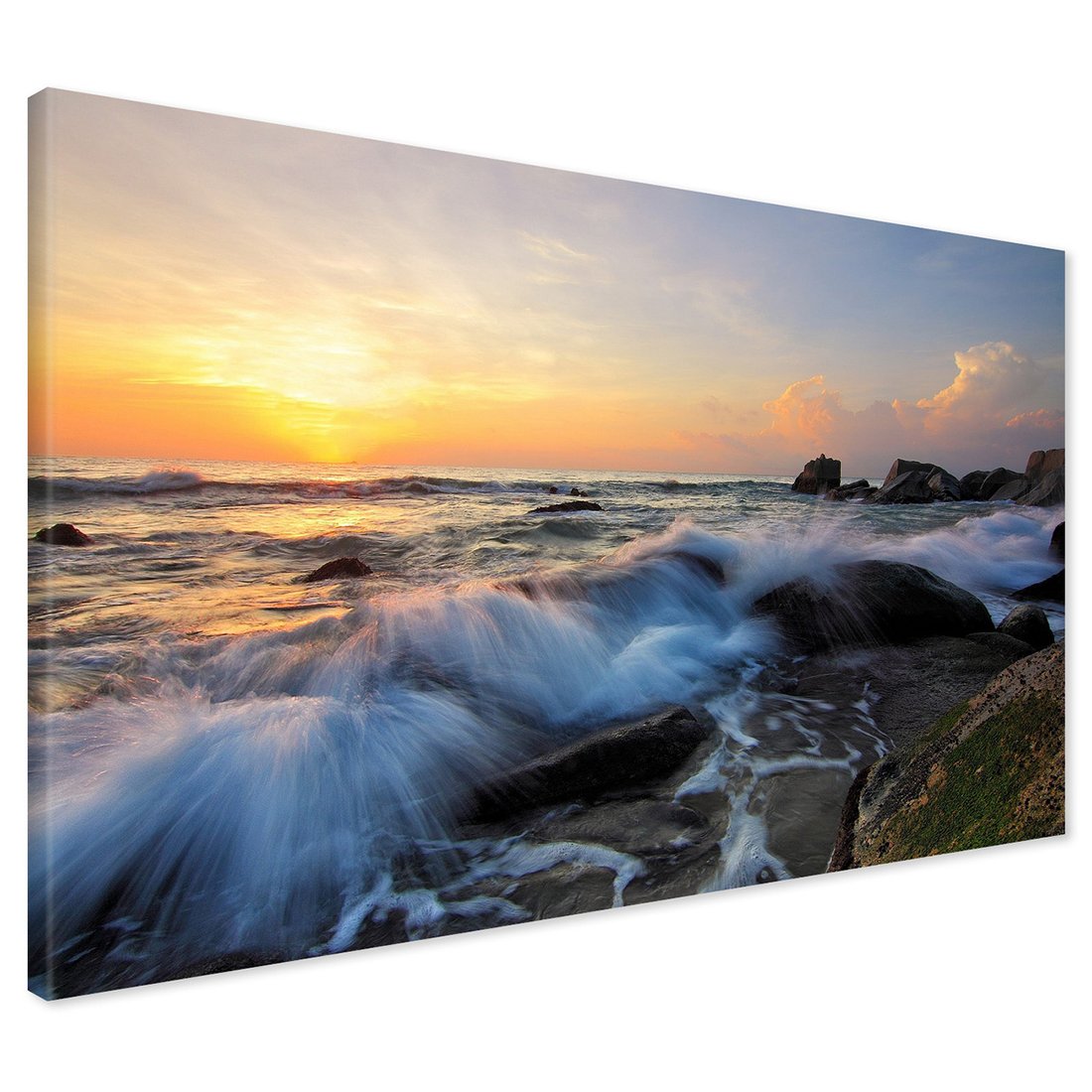 Obraz na płótnie z motywem morze, fale, zachód słońca to kwintesencja estetyki i trwałości. Dzięki łatwemu montażowi i uniwersalnemu wzornictwu, czyni go idealnym wyborem zarówno do codziennego użytku, jak i na wyrafinowany prezent.
