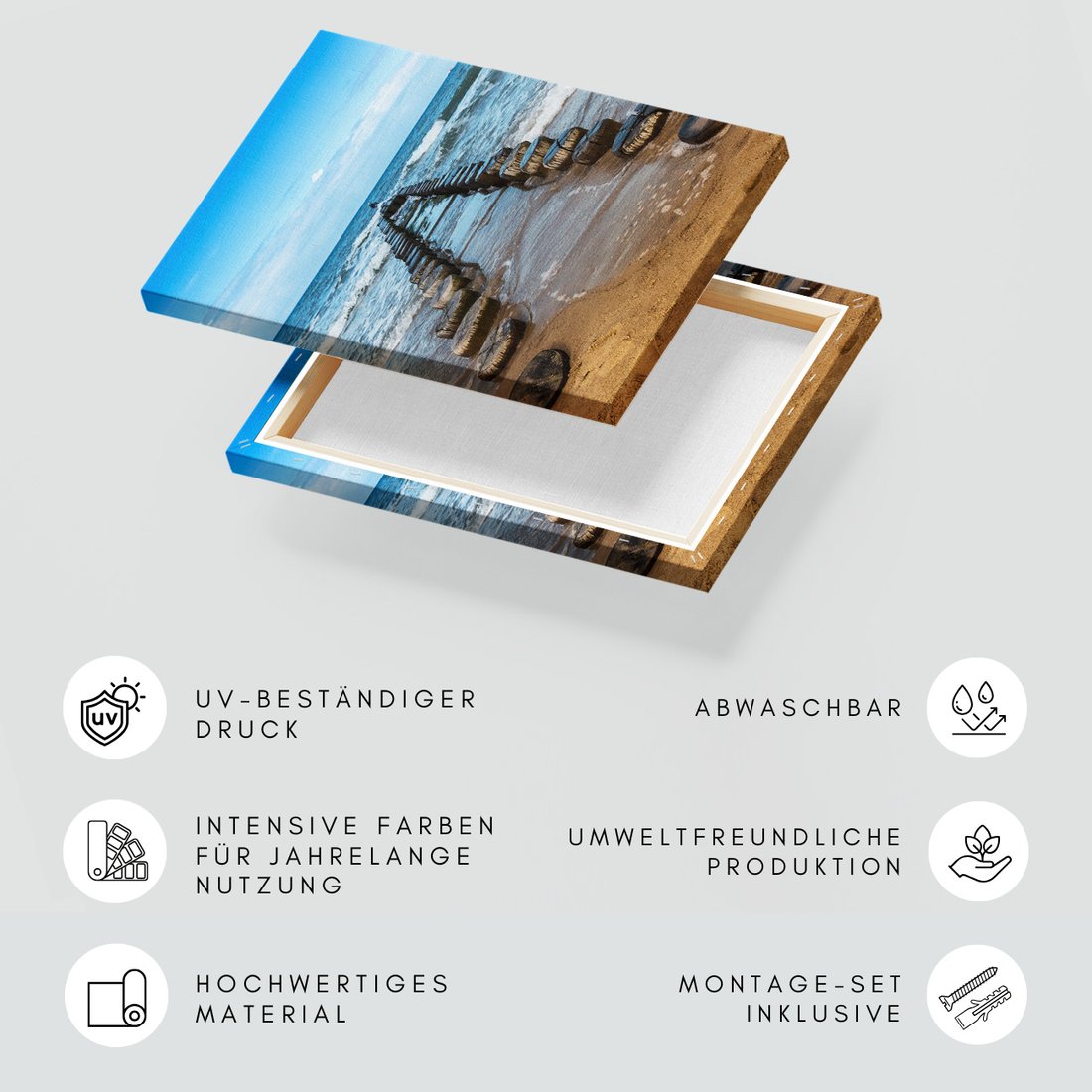 Obraz na płótnie z motywem morze, plaża, drewno to kwintesencja estetyki i trwałości. Dzięki łatwemu montażowi i uniwersalnemu wzornictwu, czyni go idealnym wyborem zarówno do codziennego użytku, jak i na wyrafinowany prezent.