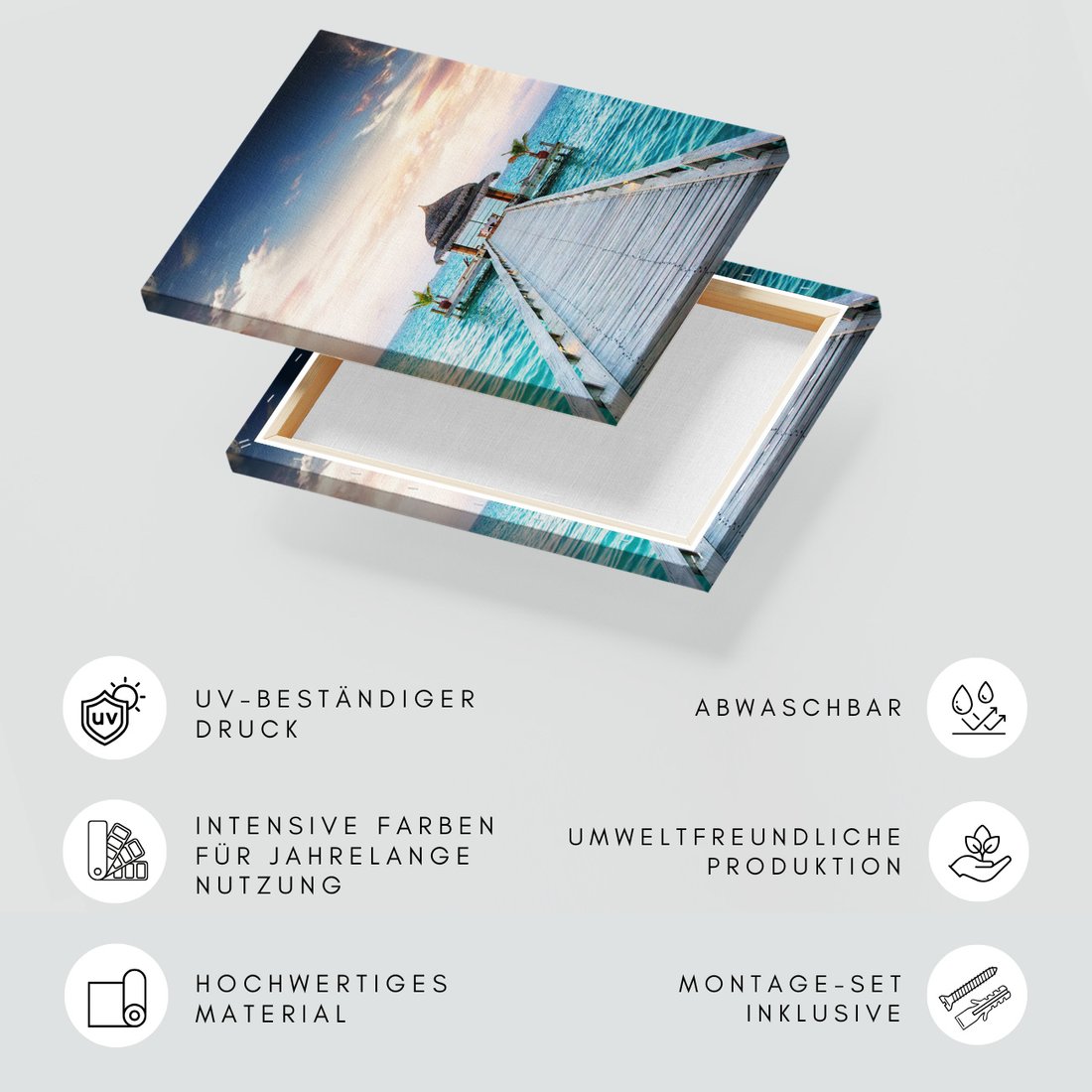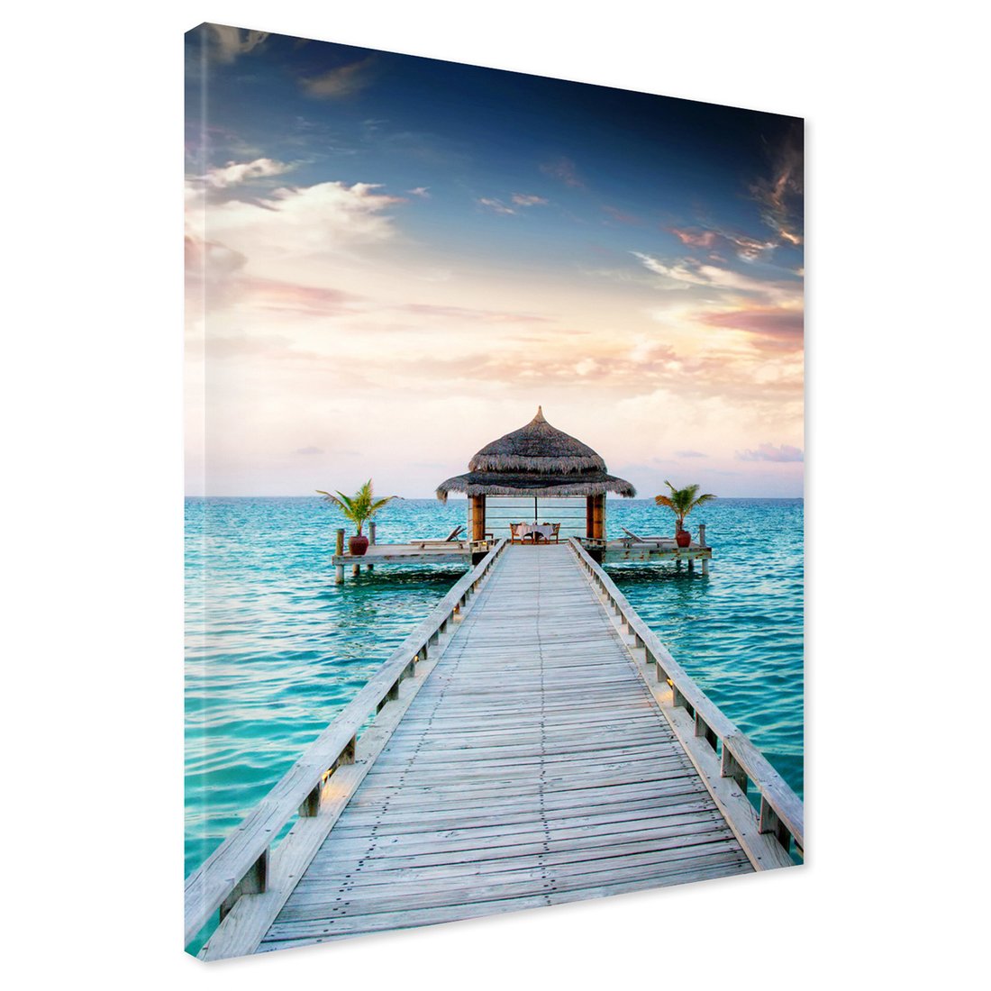 Obraz na płótnie z motywem morze, pomost, chata to kwintesencja estetyki i trwałości. Dzięki łatwemu montażowi i uniwersalnemu wzornictwu, czyni go idealnym wyborem zarówno do codziennego użytku, jak i na wyrafinowany prezent.