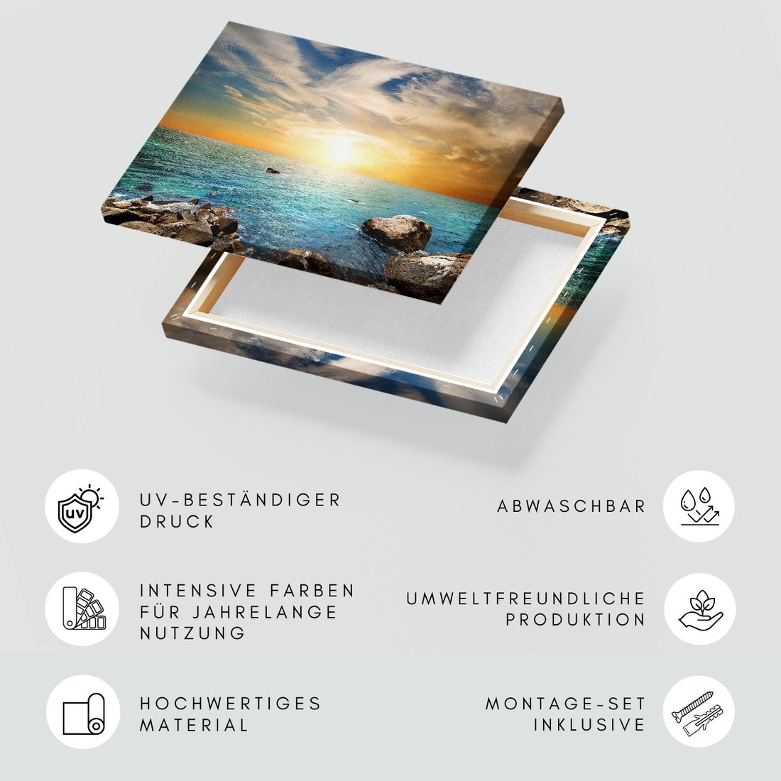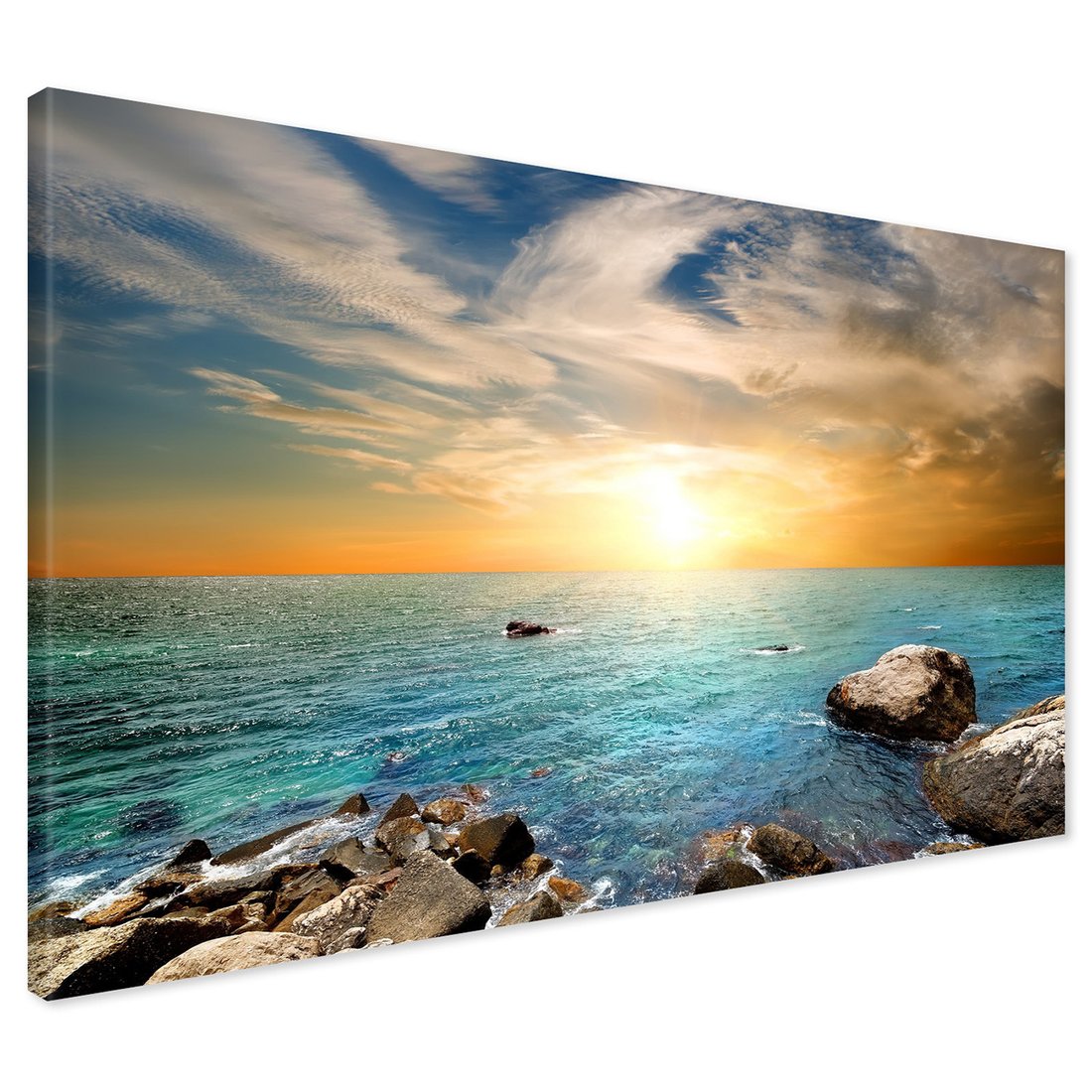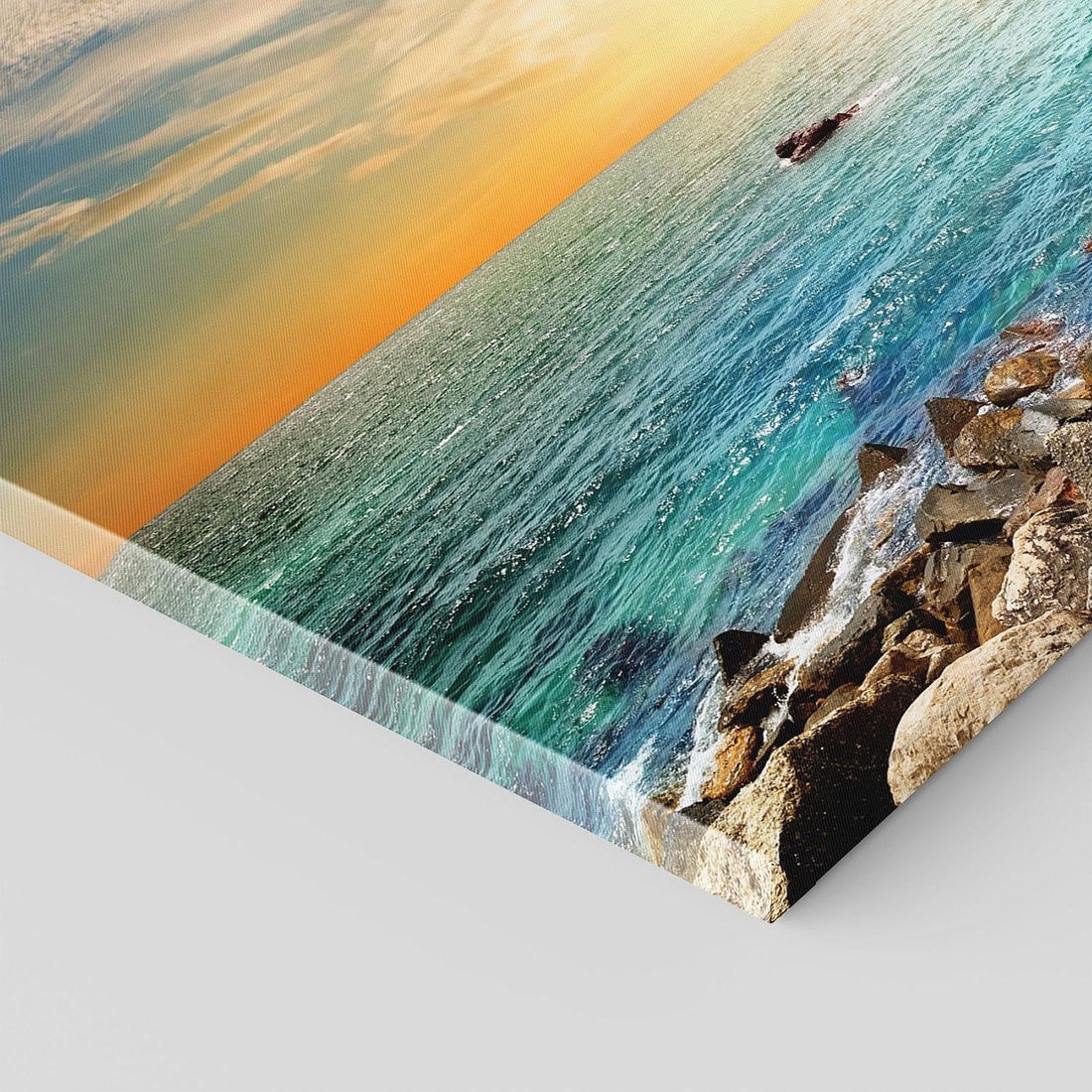 Obraz na płótnie z motywem morze, skały, zachód słońca to kwintesencja estetyki i trwałości. Dzięki łatwemu montażowi i uniwersalnemu wzornictwu, czyni go idealnym wyborem zarówno do codziennego użytku, jak i na wyrafinowany prezent.
