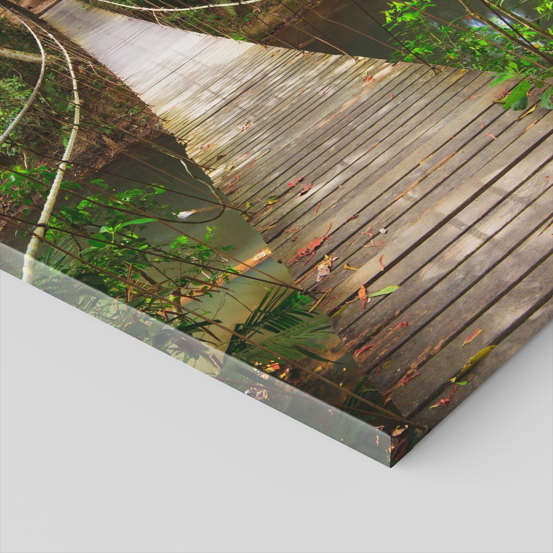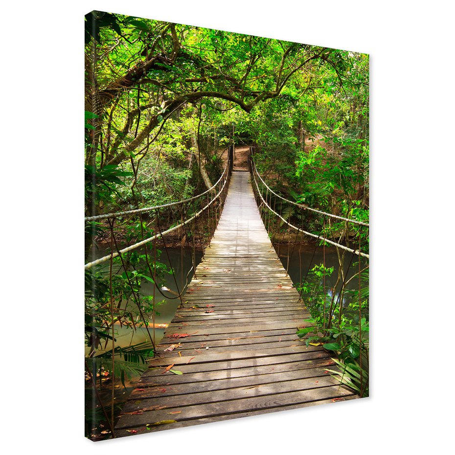 Obraz na płótnie z motywem most, las, natura to kwintesencja estetyki i trwałości. Dzięki łatwemu montażowi i uniwersalnemu wzornictwu, czyni go idealnym wyborem zarówno do codziennego użytku, jak i na wyrafinowany prezent.