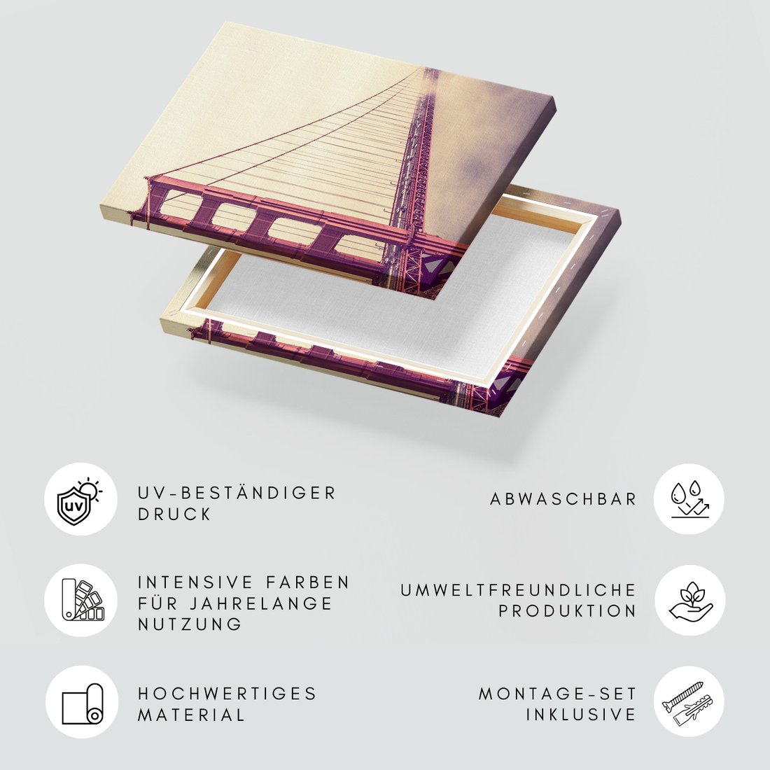 Obraz na płótnie z motywem most, miasto, mgła to kwintesencja estetyki i trwałości. Dzięki łatwemu montażowi i uniwersalnemu wzornictwu, czyni go idealnym wyborem zarówno do codziennego użytku, jak i na wyrafinowany prezent.