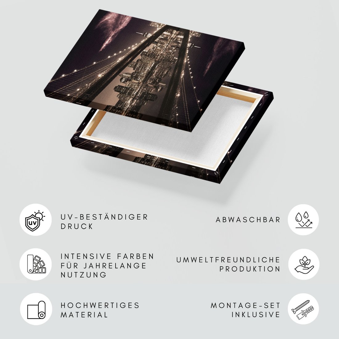 Obraz na płótnie z motywem most, miasto, noc to kwintesencja estetyki i trwałości. Dzięki łatwemu montażowi i uniwersalnemu wzornictwu, czyni go idealnym wyborem zarówno do codziennego użytku, jak i na wyrafinowany prezent.