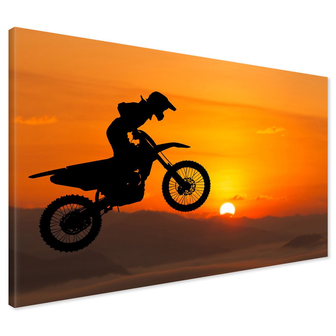 Obraz na płótnie z motywem motocross, skok, sylwetka to kwintesencja estetyki i trwałości. Dzięki łatwemu montażowi i uniwersalnemu wzornictwu, czyni go idealnym wyborem zarówno do codziennego użytku, jak i na wyrafinowany prezent.